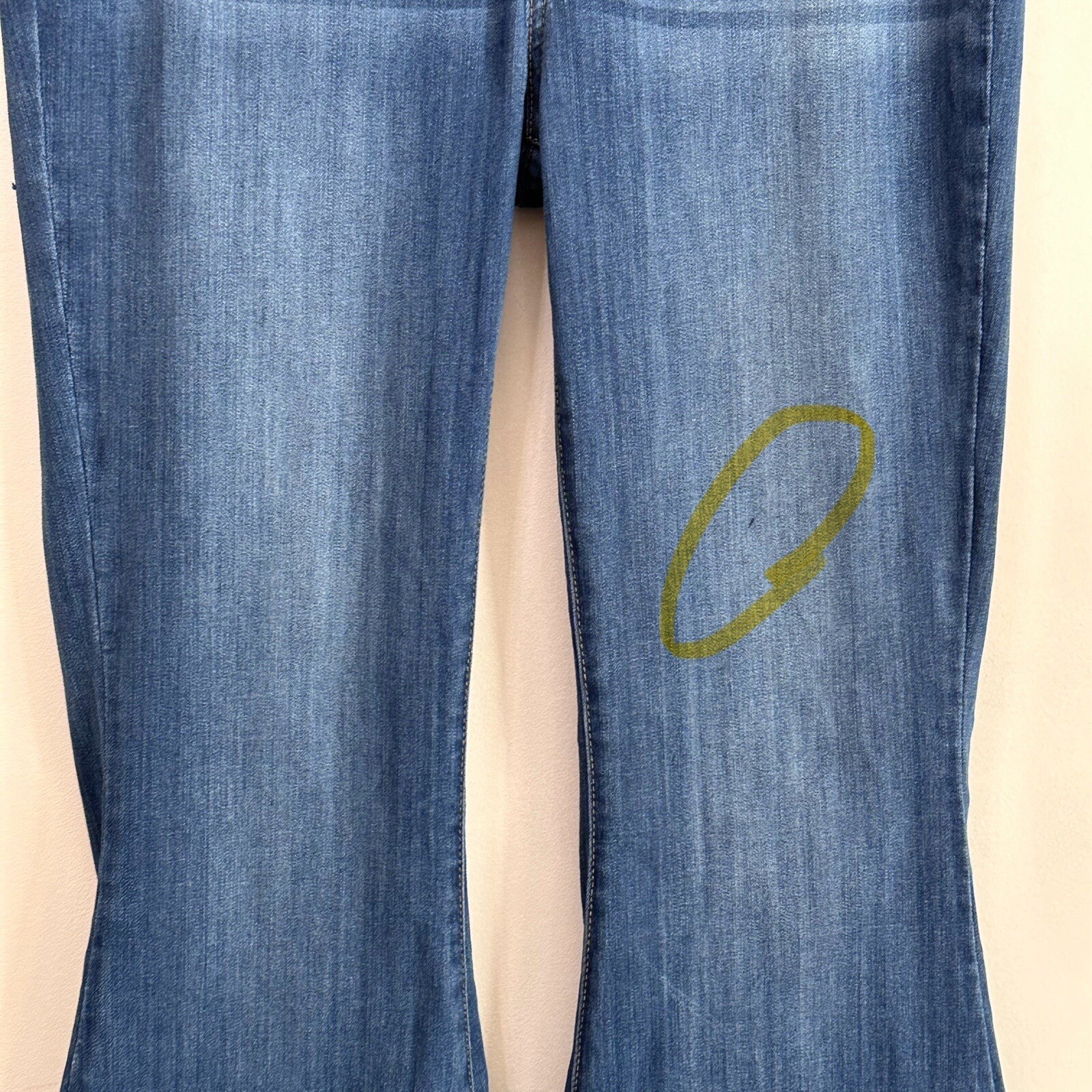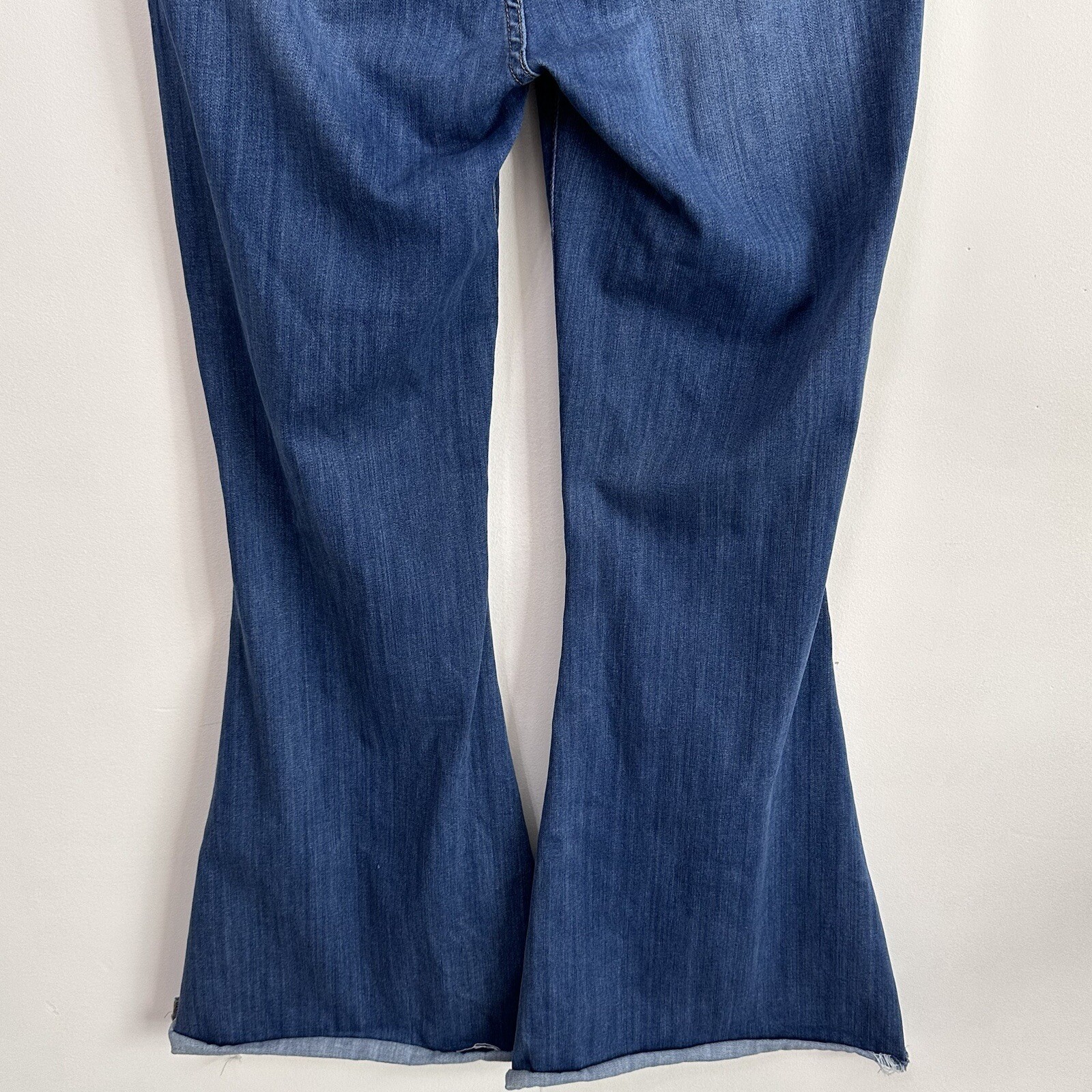 как выглядит Judy Blue Pull On Super Flare Jeans 15/32 XL 34" Waist High Rise Raw Hem Blue фото