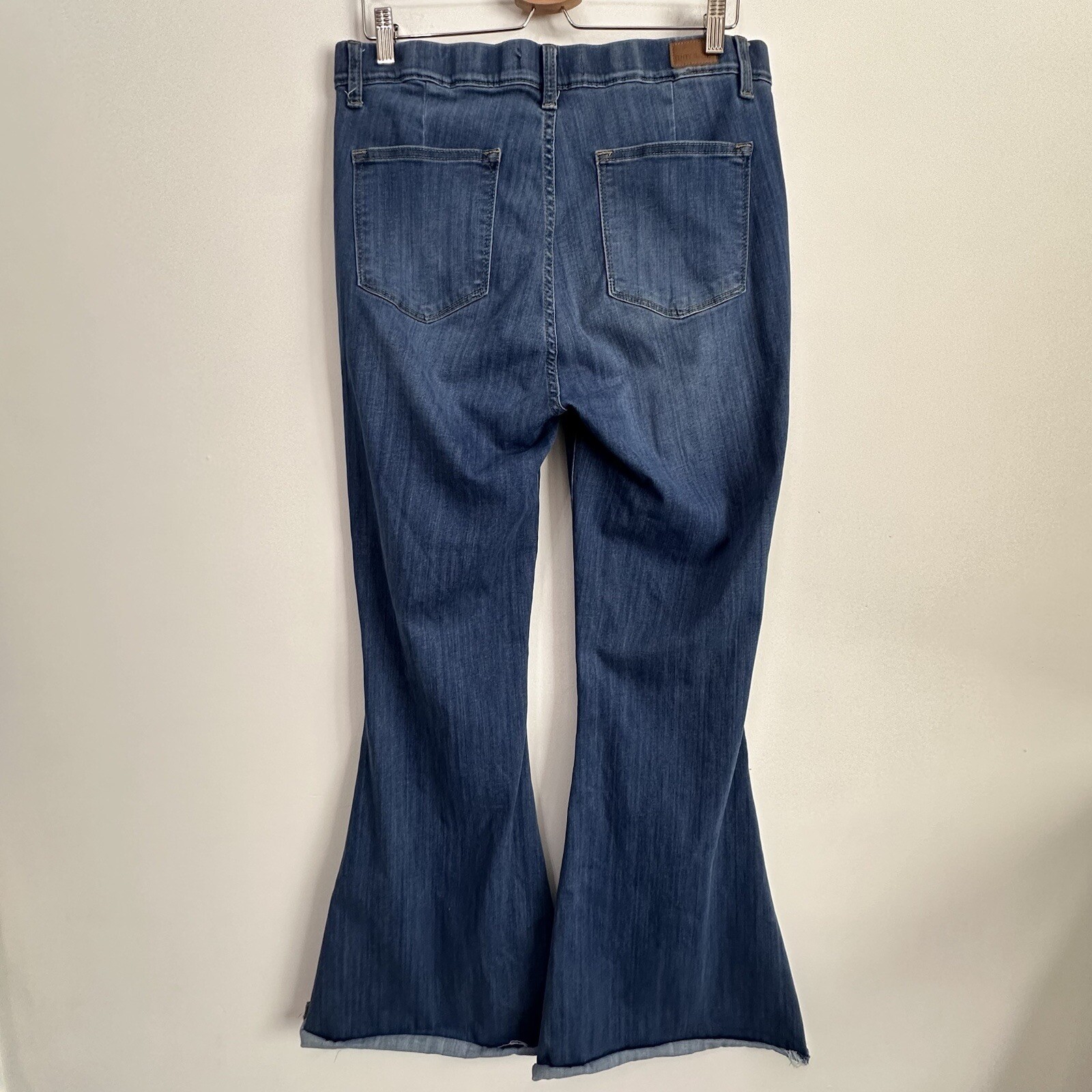 Judy Blue Pull On Super Flare Jeans 15/32 XL 34 Waist High Rise Raw Hem Blue