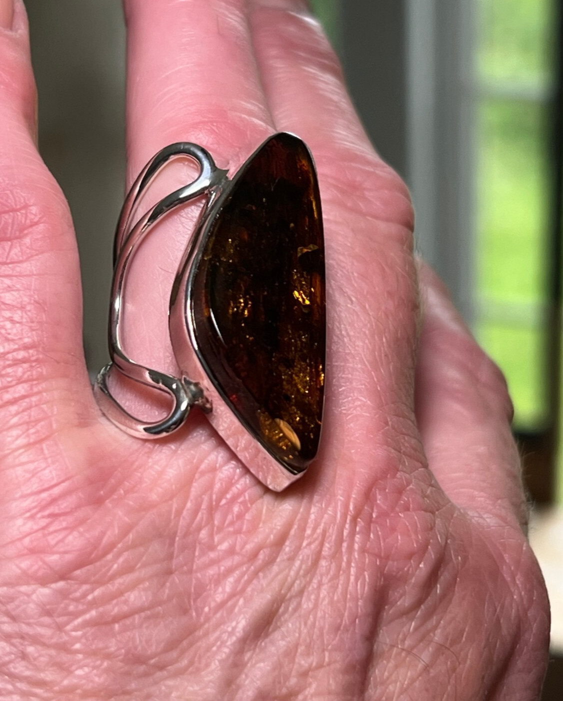 Baltic Amber ring 925 Sterling silver Made in Poland size 8 adjustable