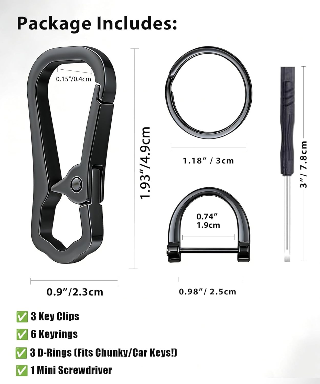 • Keychain Clip with Key Rings and D Ring, Metal Key Chain Hooks Holder for Home C