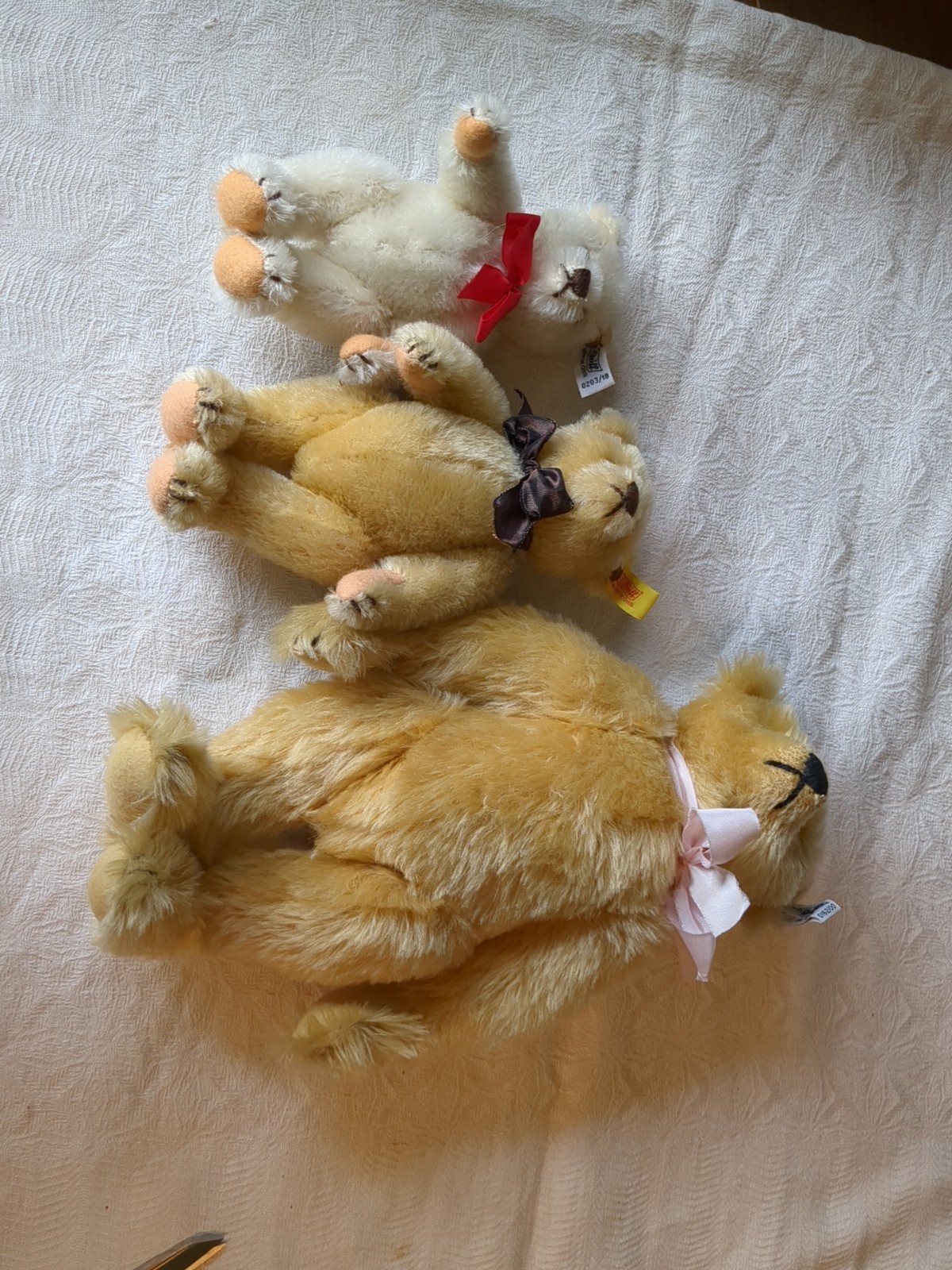 Lot of 3 Vintage Mohair Steiff Bears 7 - 12.5 Lovely Old Bears W/ Tags