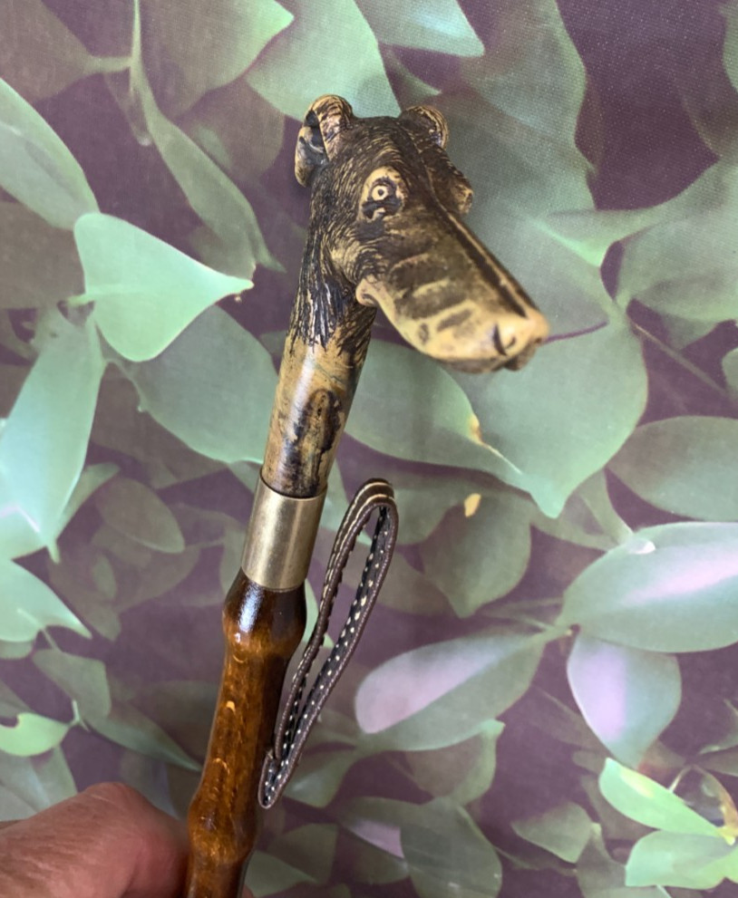 как выглядит Vintage Italian Cadillac GREYHOUND DOG SHOE HORN 21 " Long Bamboo Shaft Detailed фото