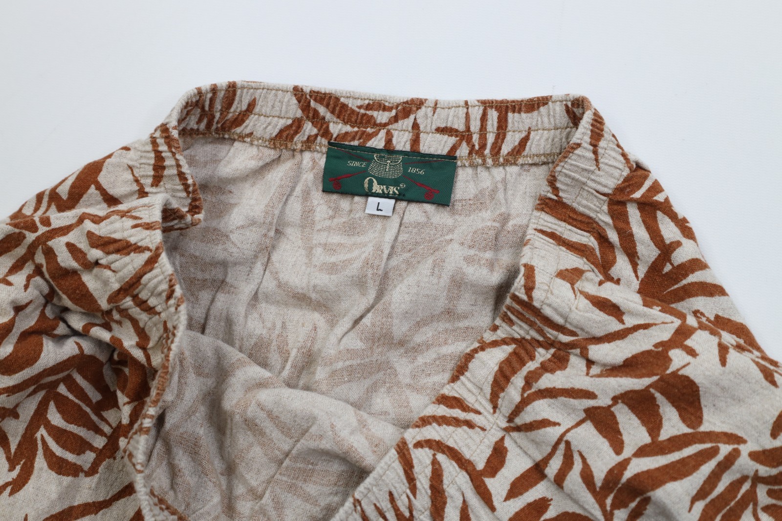 как выглядит Vintage 90s Orvis Womens Large Rayon Gabardine Linen Palm Leaf Skirt USA Pockets фото