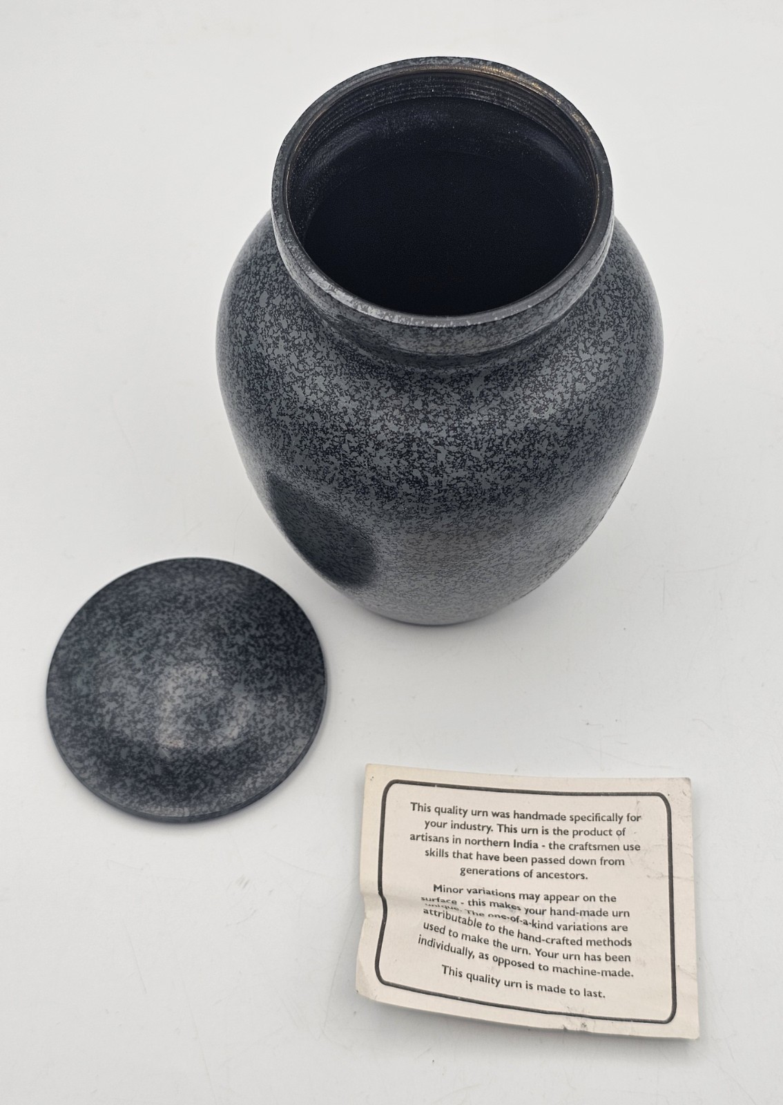 как выглядит Brass Small Memorial Cremation Urn w/ Metal Lid 6" Human/Pet Ashes Grey Black фото