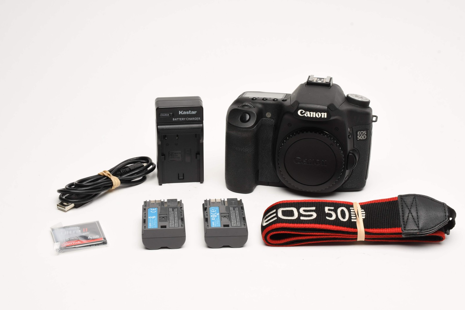 Canon EOS 50D DSLR Body w/2X Batts, charger, strap, 4GB CF, Only 5224 Acts