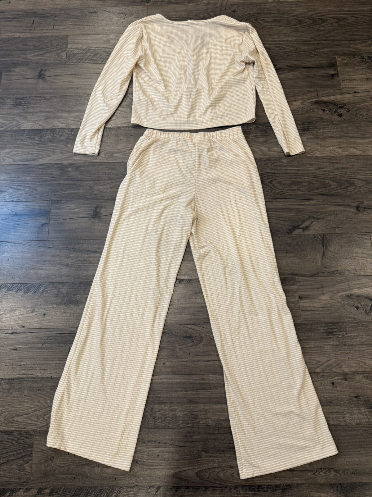 Happily Gray Women's Two Piece Beige/White Loungewear Set, Front tie, Size Small