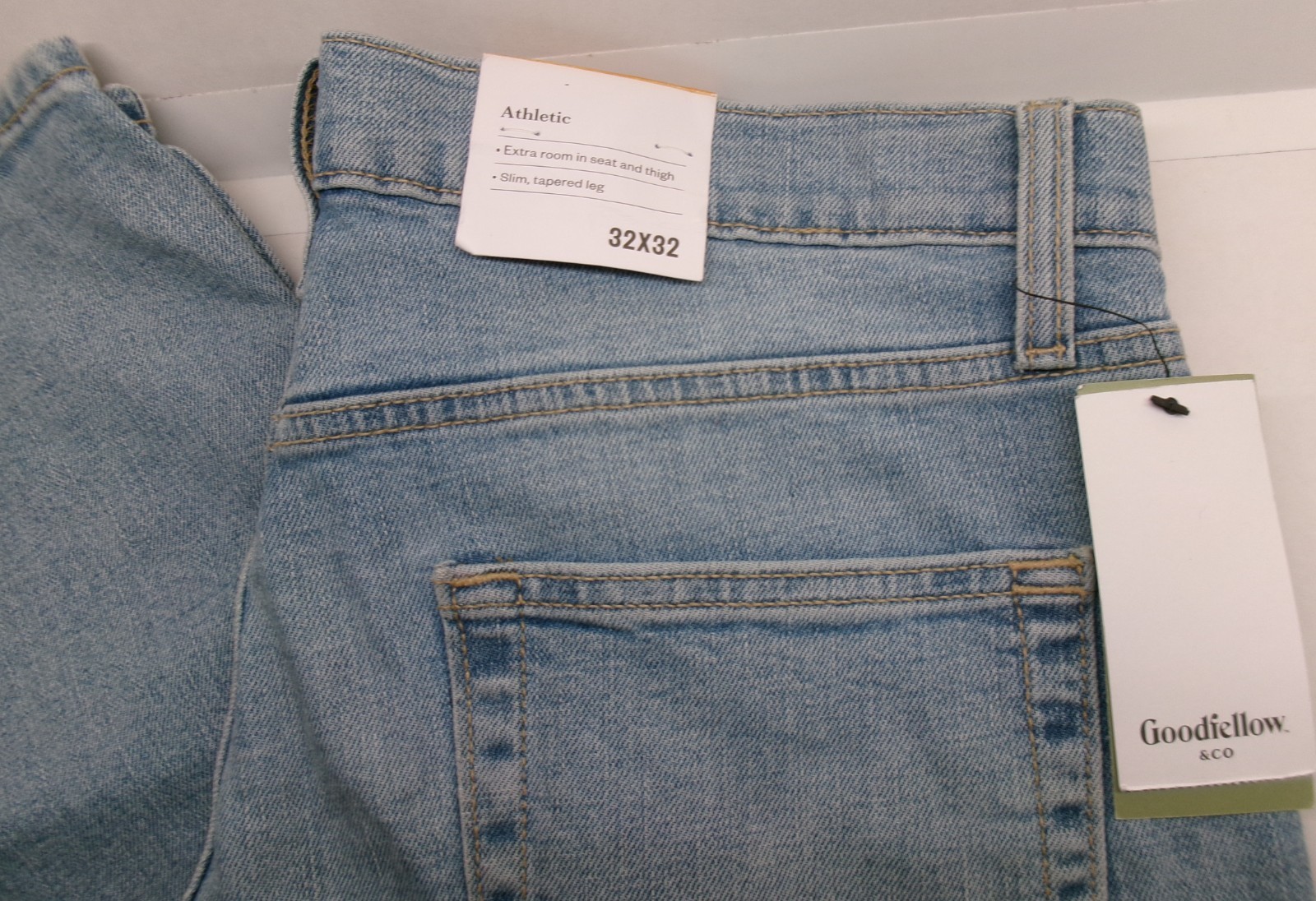 как выглядит Goodfellow ATHLETIC FIT Roomy seat thigh Tapered Leg denim jeans Total Flex фото