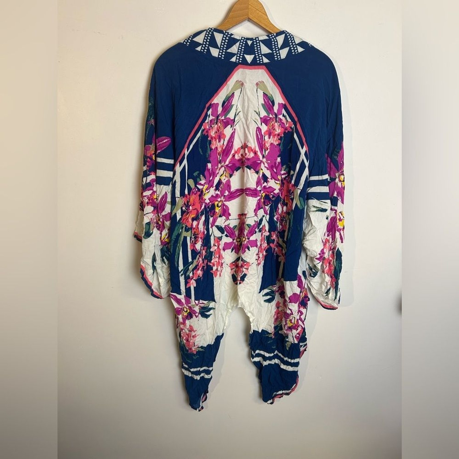 как выглядит Flying Tomato Size S/M Pink-Blue Kimono Cardigan Floral Lightweight flare Sleeve фото