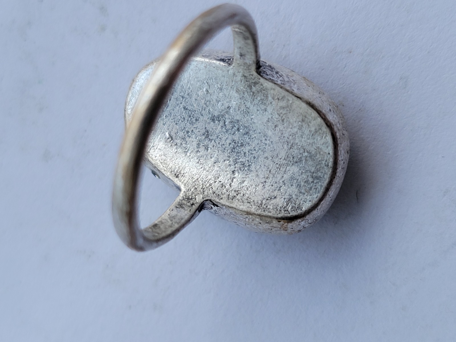 Sterling Silver Abalone Paua Shell Ring Size 8 With Clear Accent Stone