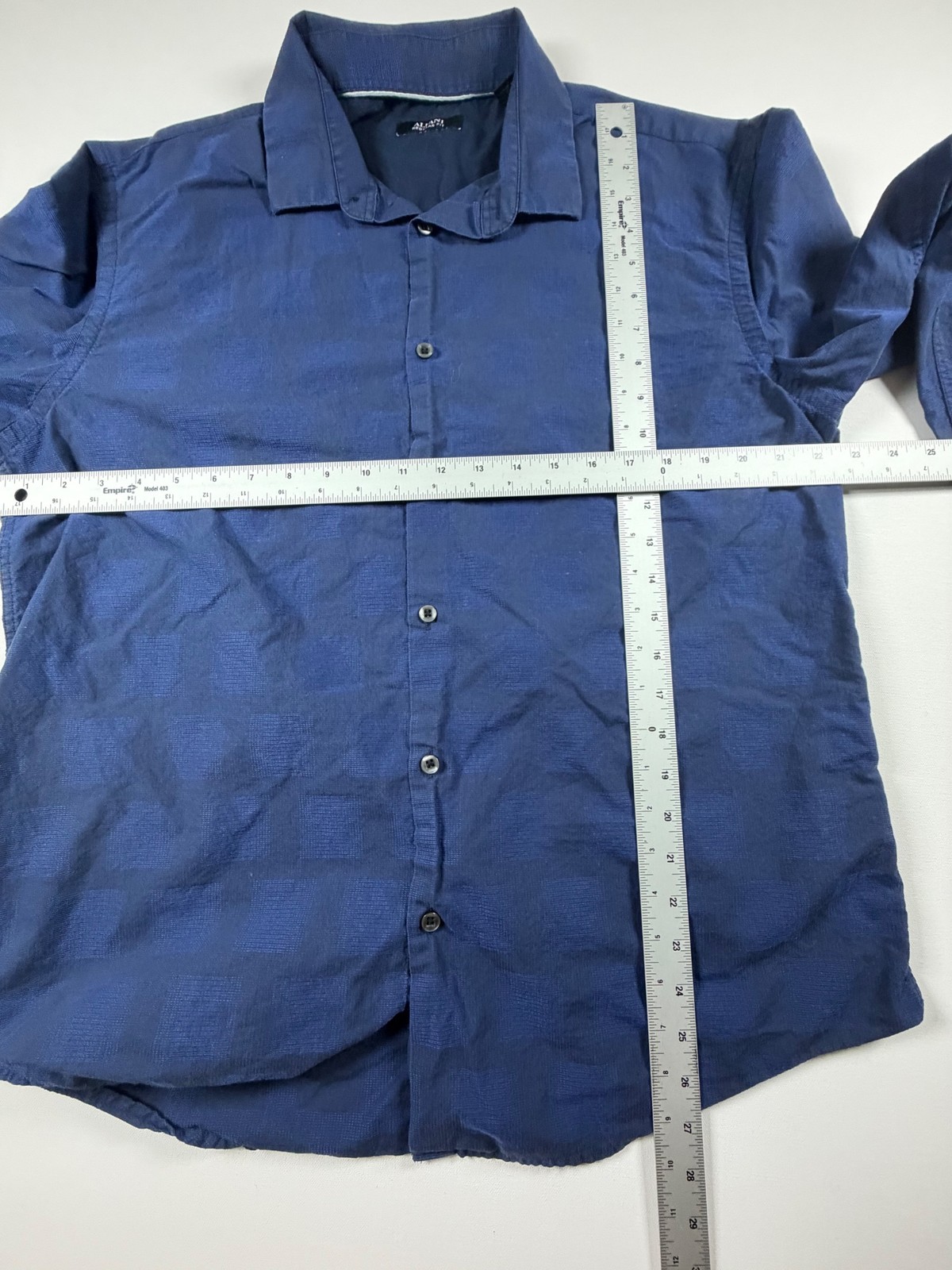 Alfani Shirt Mens L Navy Textured Long Sleeve Button Up Regular Fit Cotton