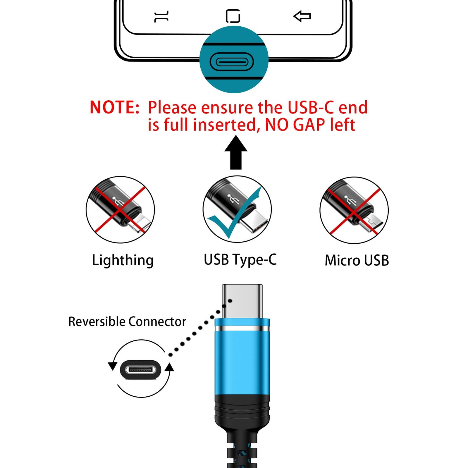 USB C Charger Cable Fast Charging 3 Pack 3ft for 3FT, Black Blue Purple