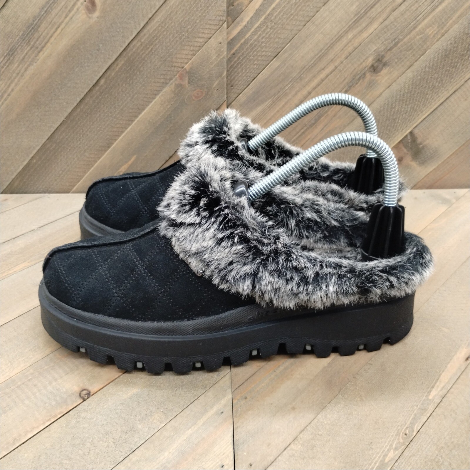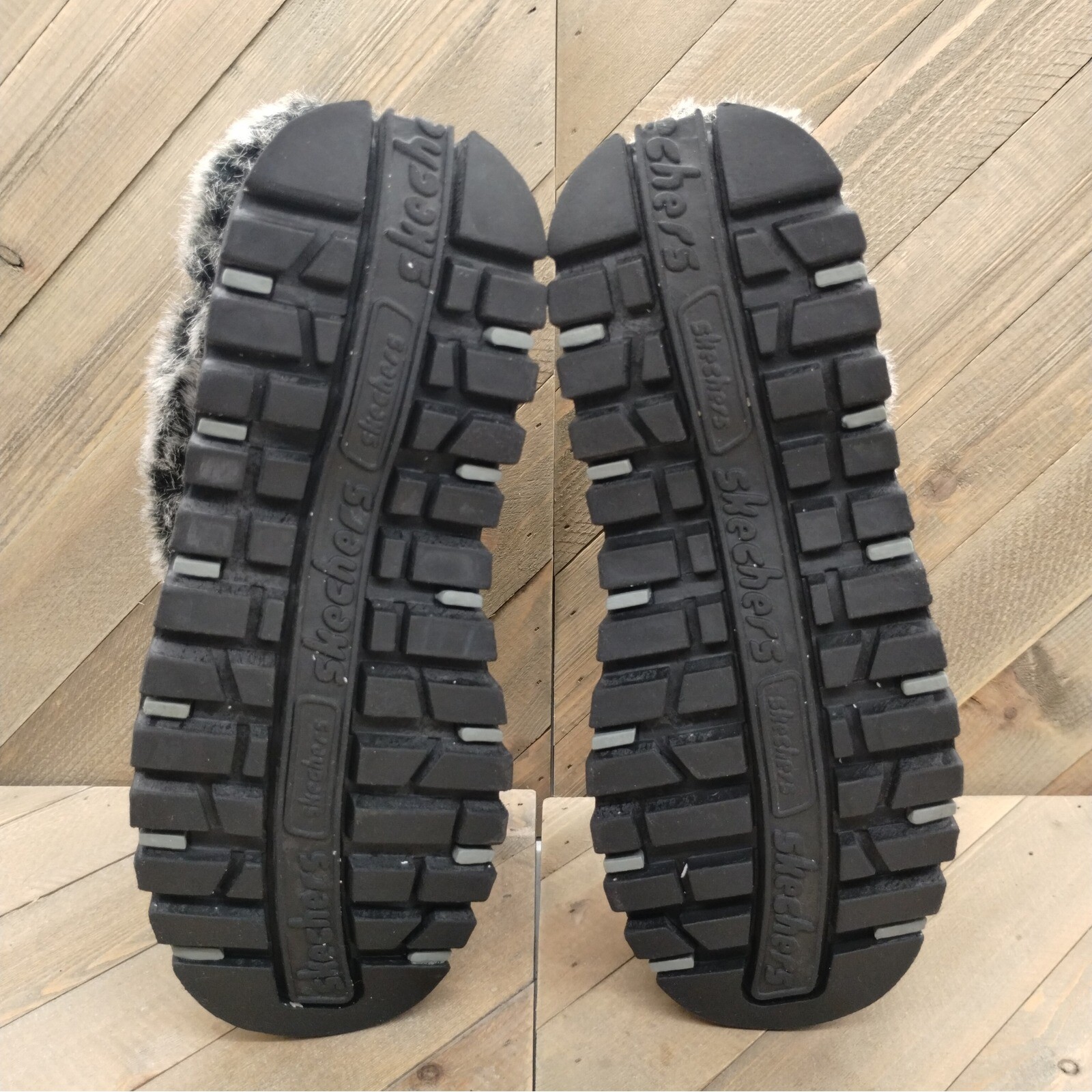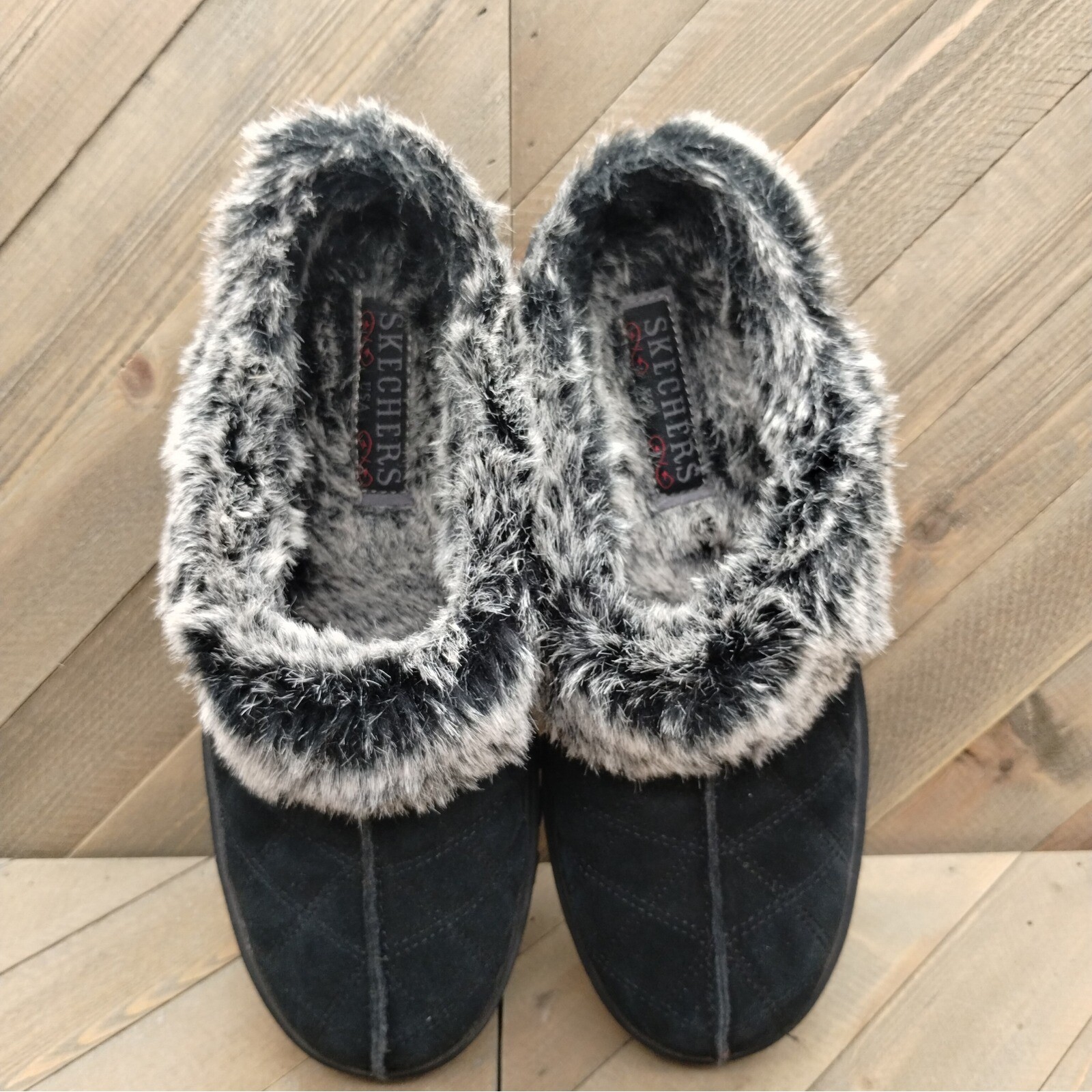 Skechers Shindigs Fortress Fur Lined Mules Womens Size 8 Black Grey Vintage