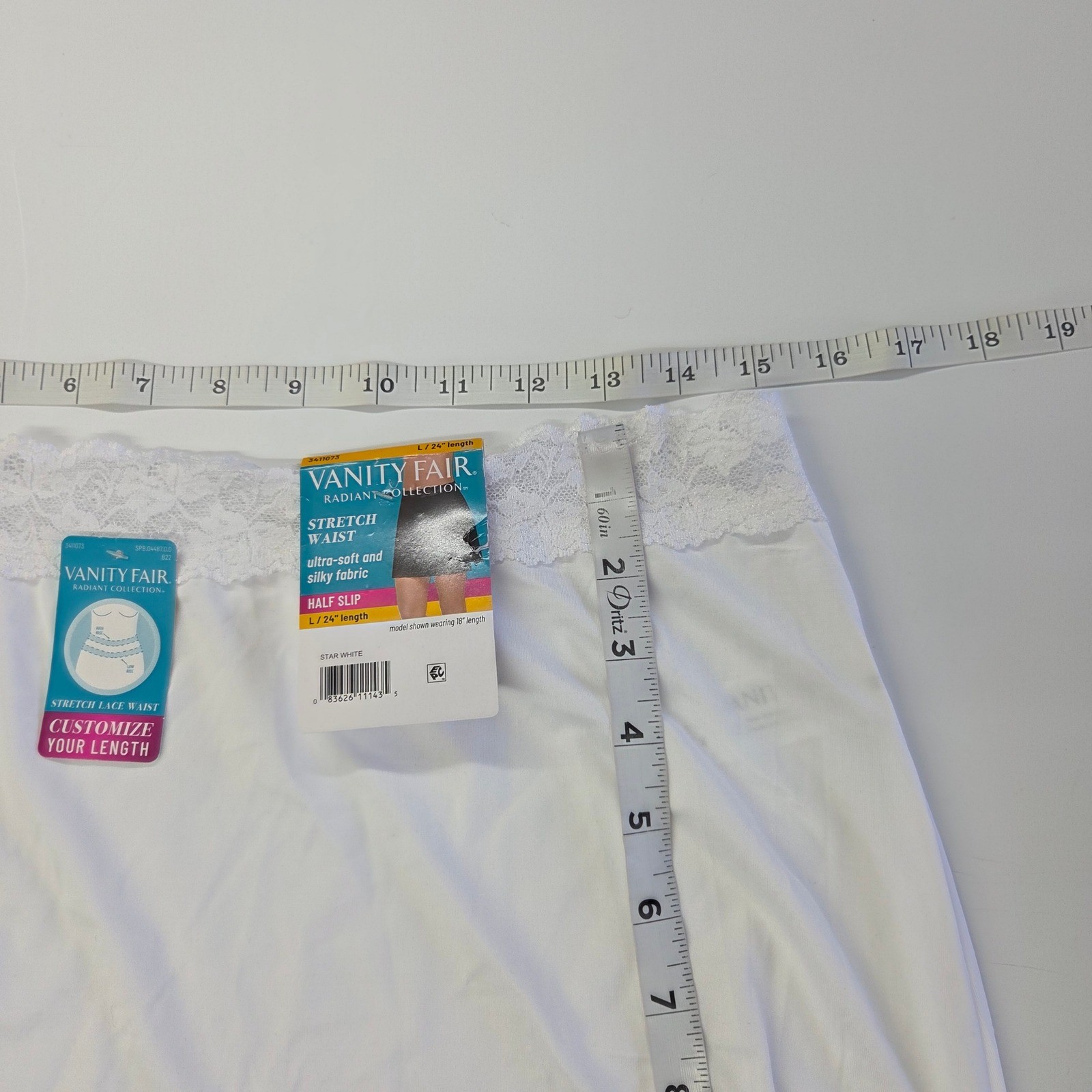 Vanity Fair Radiant Collection Half Slip Star White Lace Waist 11073 Large 24L