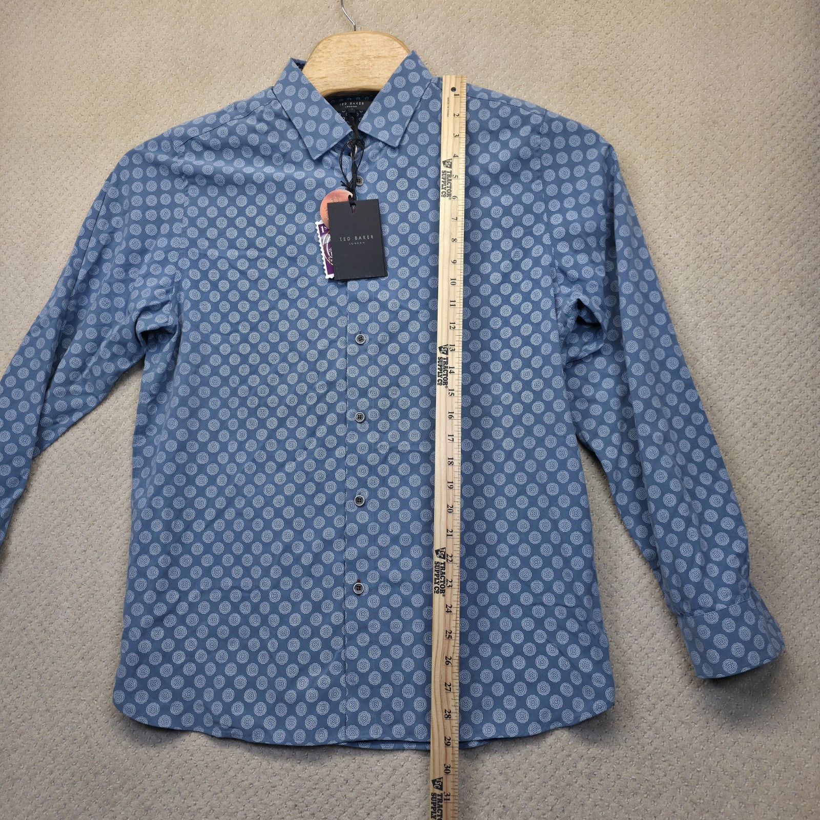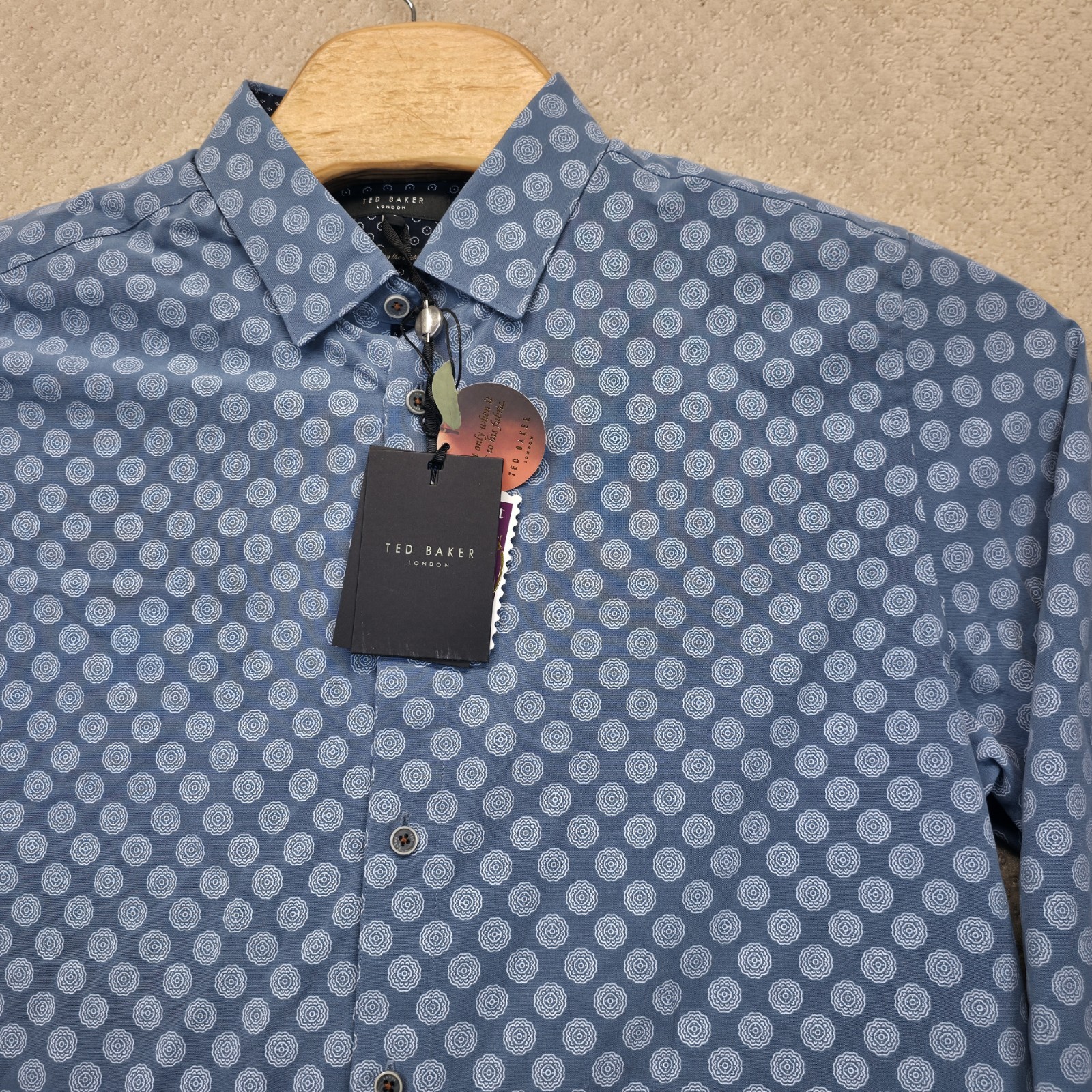 NWT Ted Baker London Noder Shirt Men 5 Blue Geometric Medallion Contrast Cuffs