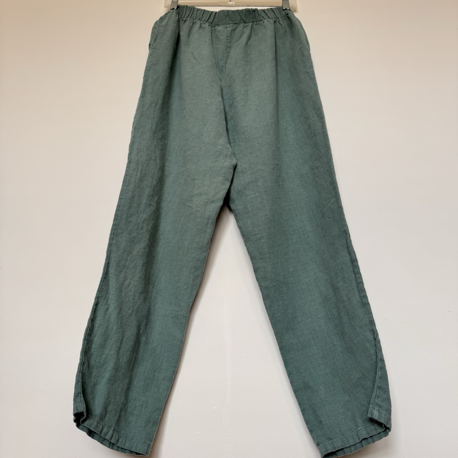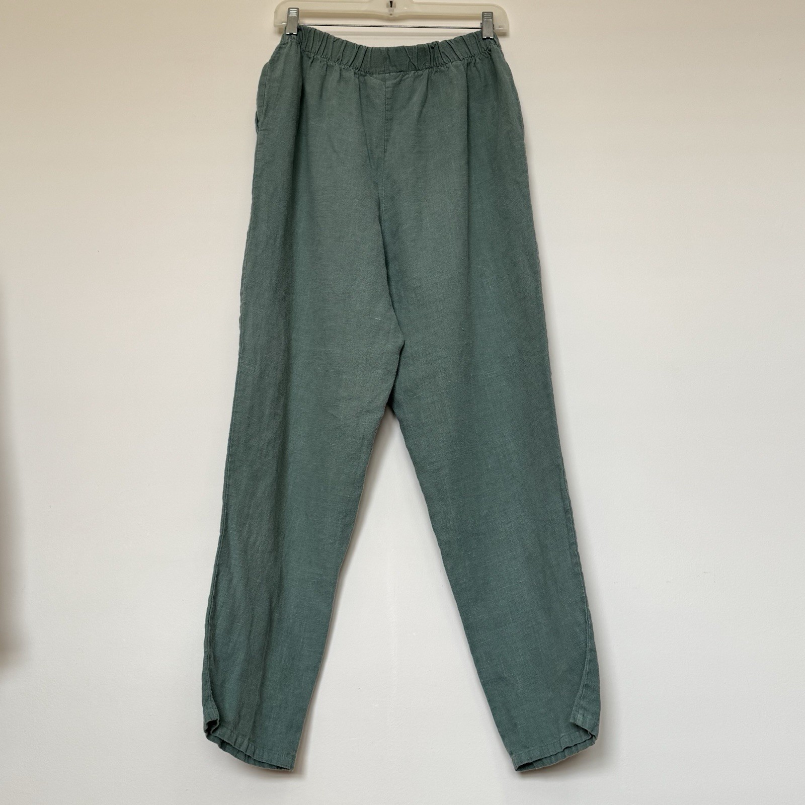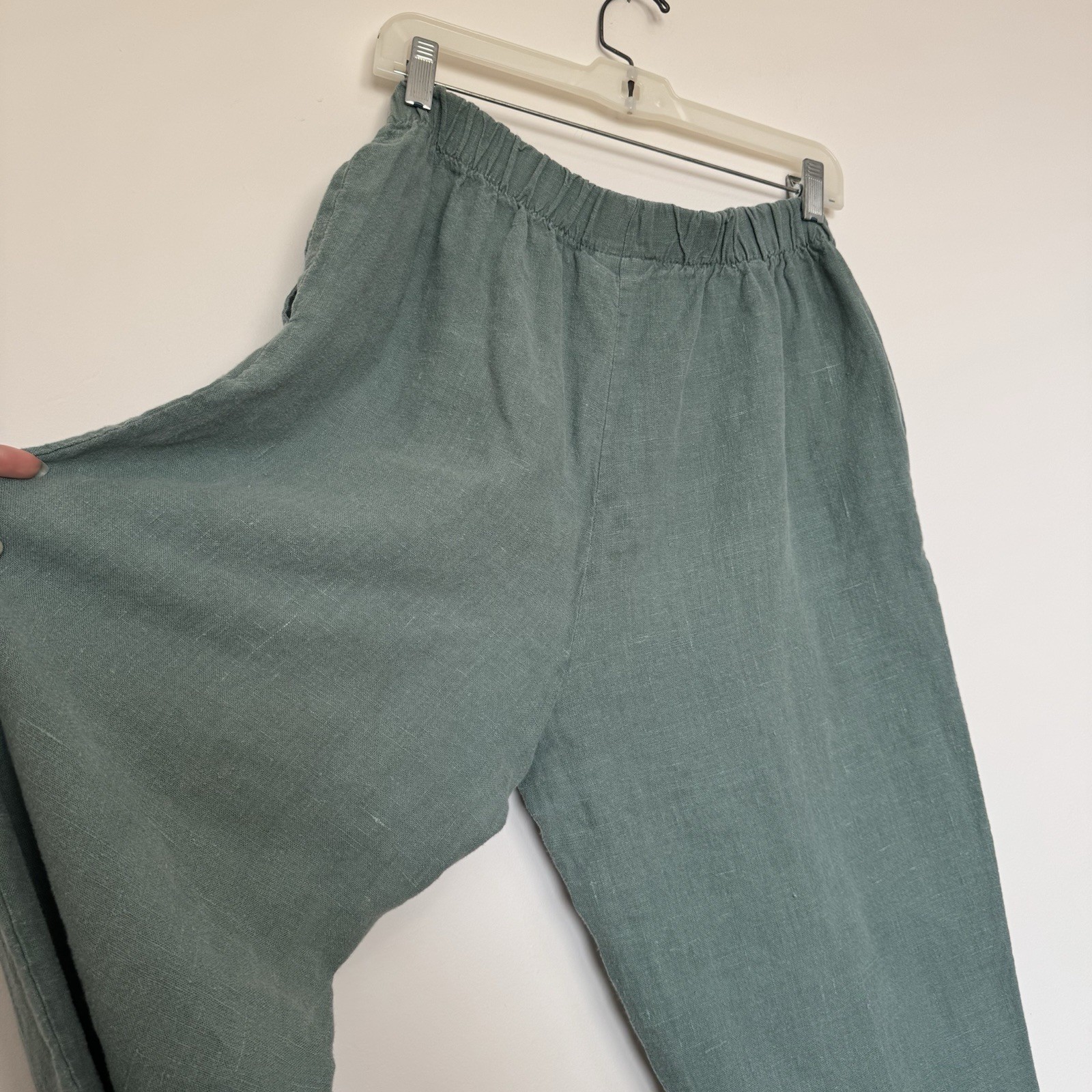 Bryn Walker Pull On Aqua Green 100 Linen Wide Leg Tapered Pocket Pants Sz L