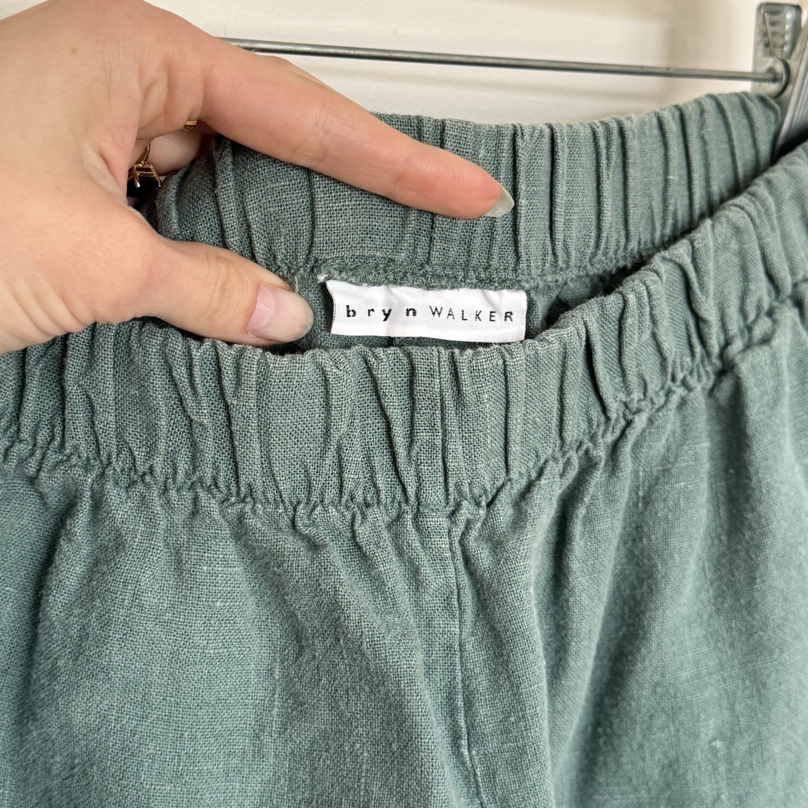 как выглядит Bryn Walker Pull On Aqua Green 100 Linen Wide Leg Tapered Pocket Pants Sz L фото