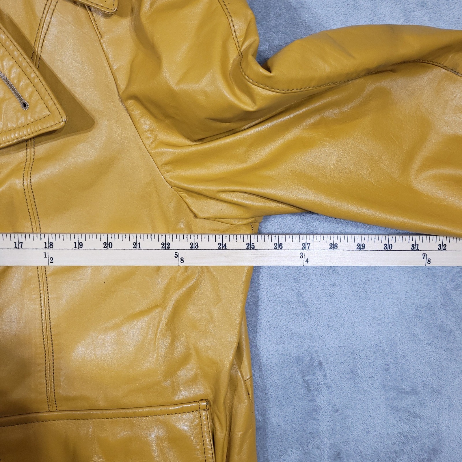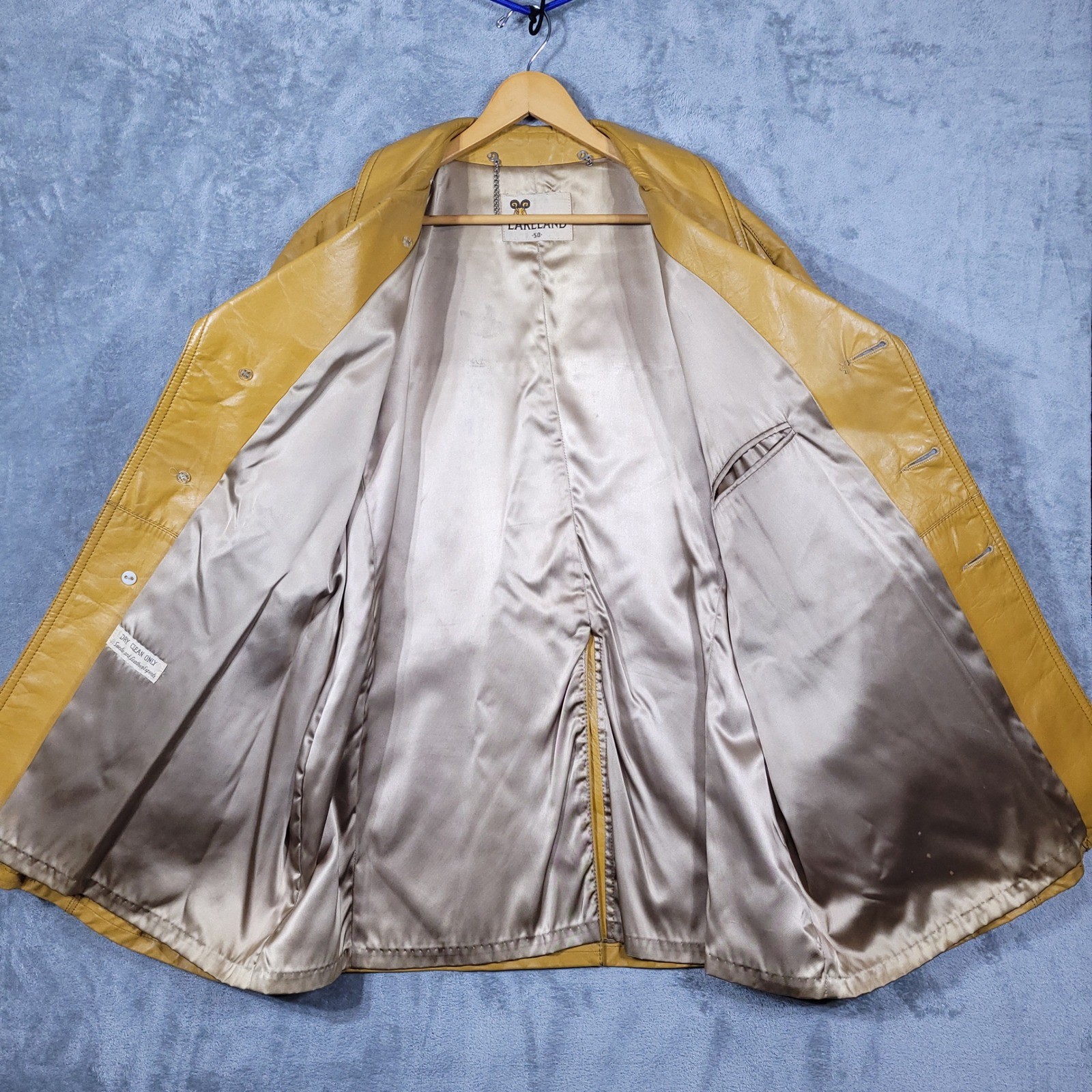 как выглядит Lakeland Mens Vintage 70s Mustard Yellow Leather Trench Car Coat Jacket Size 50 фото