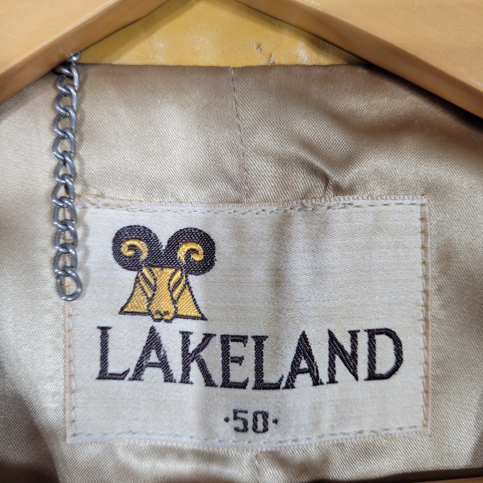 Lakeland Mens Vintage 70s Mustard Yellow Leather Trench Car Coat Jacket Size 50