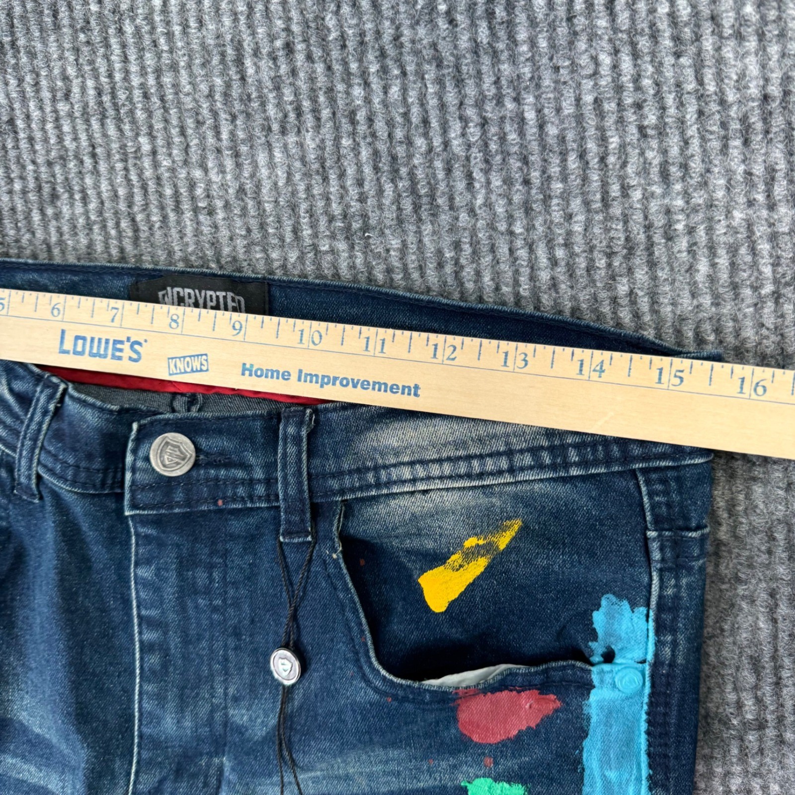 как выглядит New ENCRYPTD Boys 18 Slim Fit Jeans Distressed Paint Splatter Hustle Graphic фото