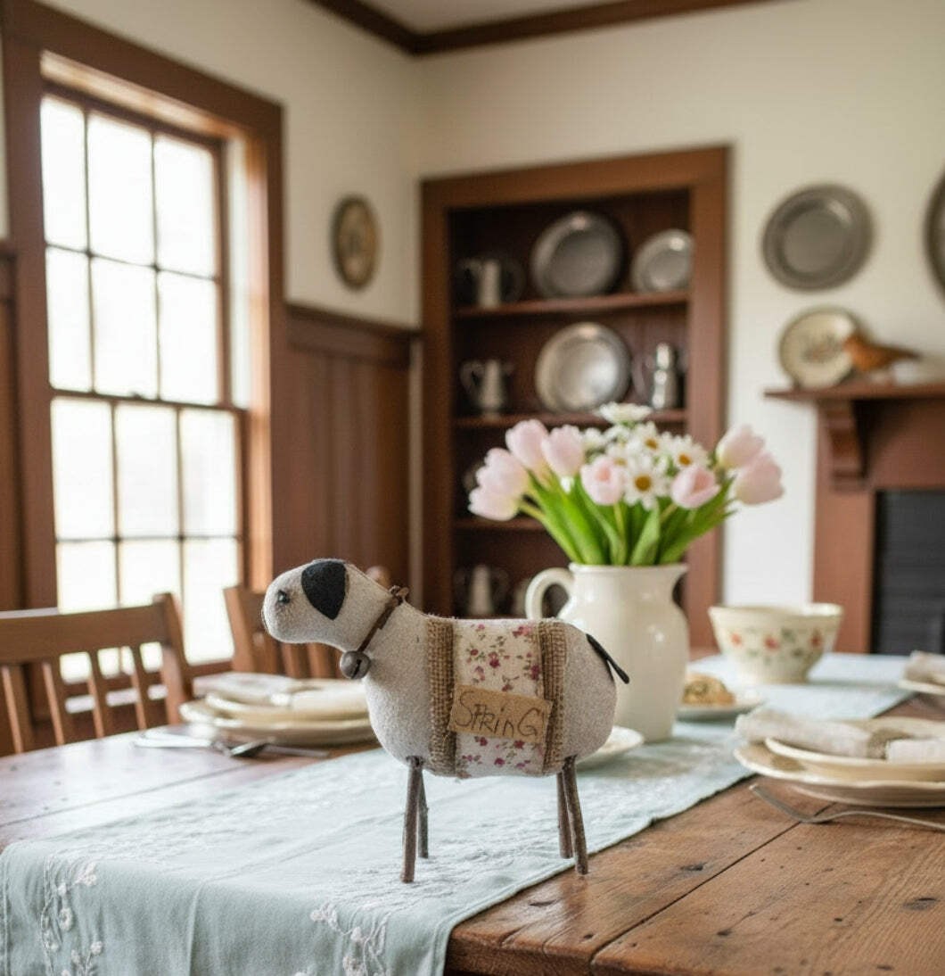 Primitive Spring Easter Handcrafted USA Vintage Inspired Sheep w/ Wood Legs