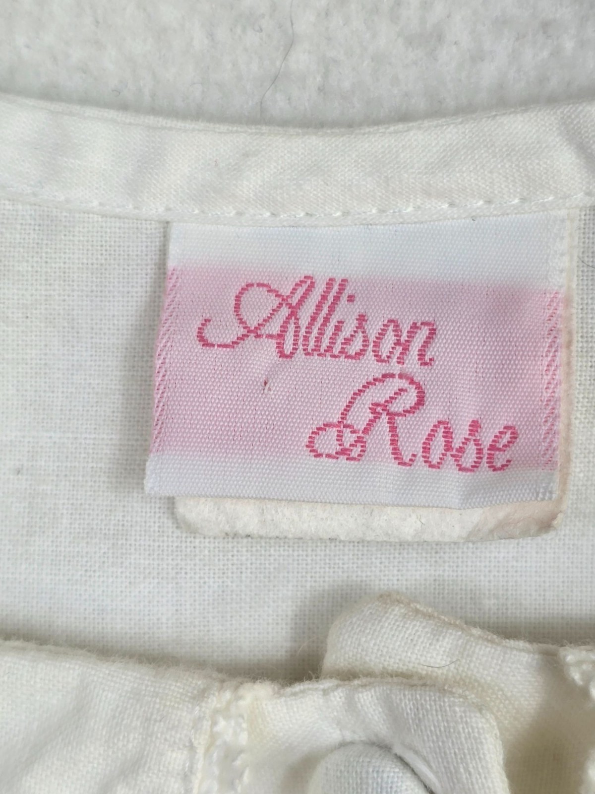 Vintage Allison Rose Hand Embroidered Baby Dress Size 3T White Cotton USA-Made