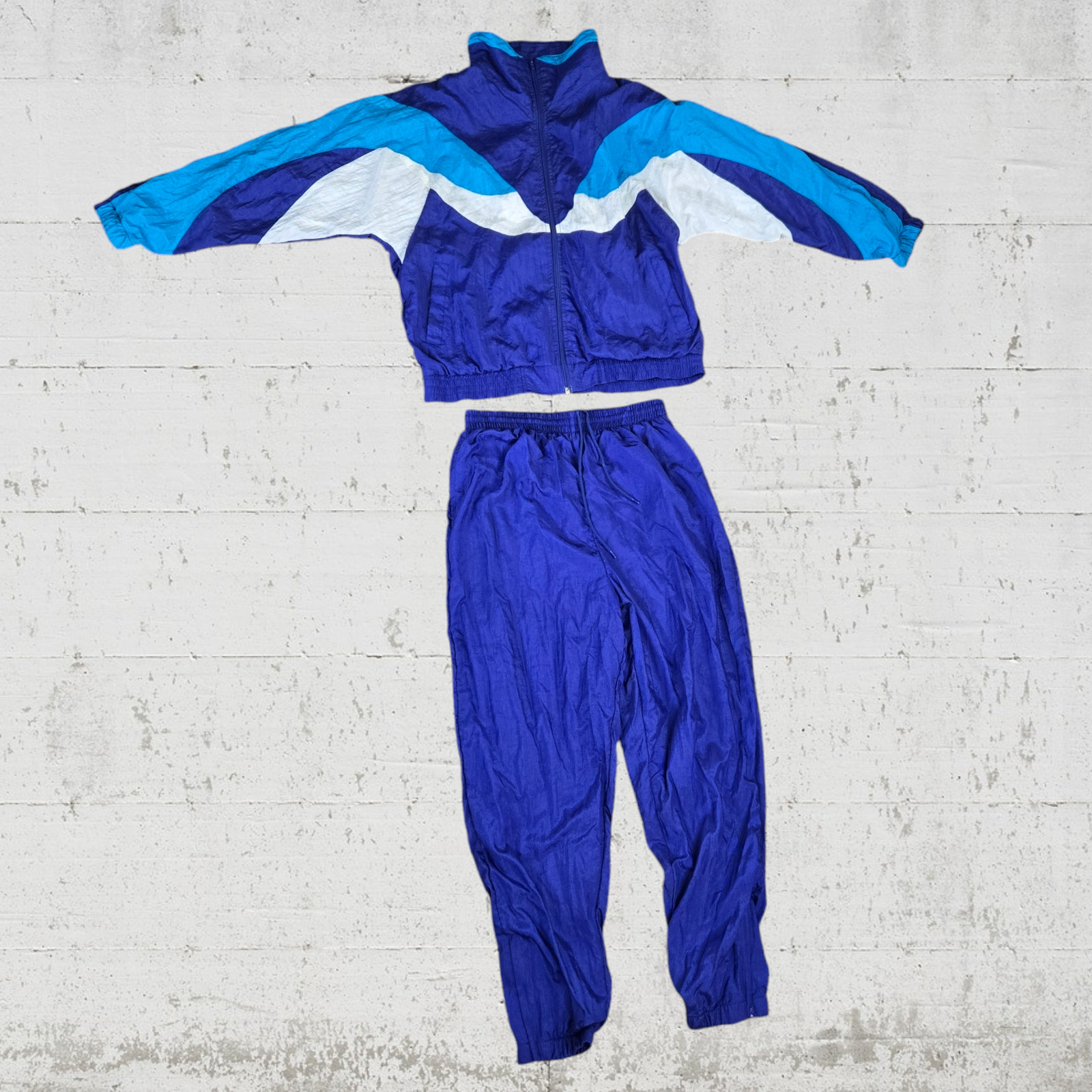 90s Vintage Colorblock Track Set Y2K Blue White Windbreaker Joggers Size Medium