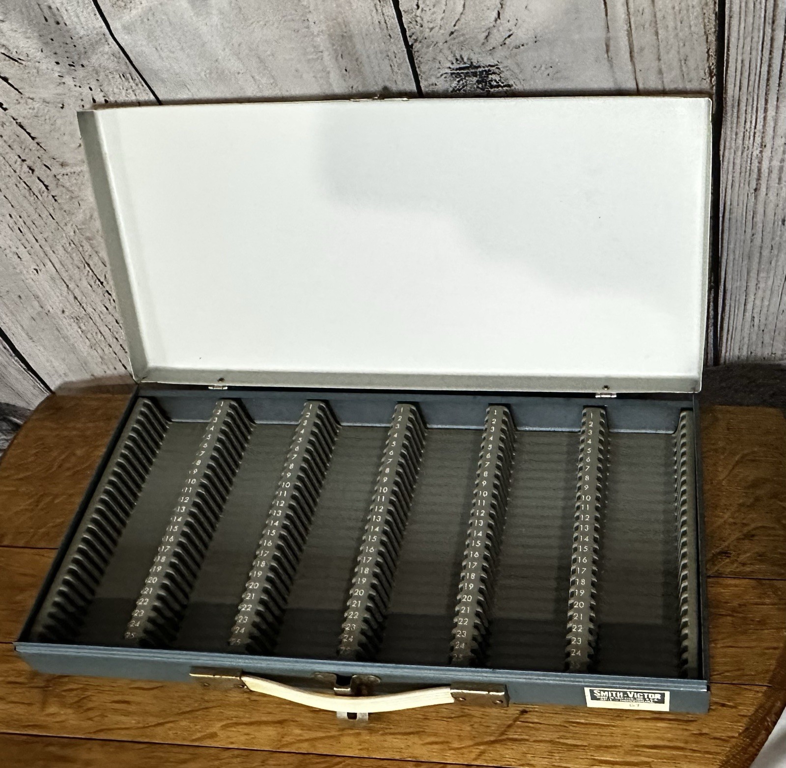 как выглядит VINTAGE SMITH-VICTOR SLIDE SORTER METAL CASE MODEL SF-1 INDIVIDUAL фото