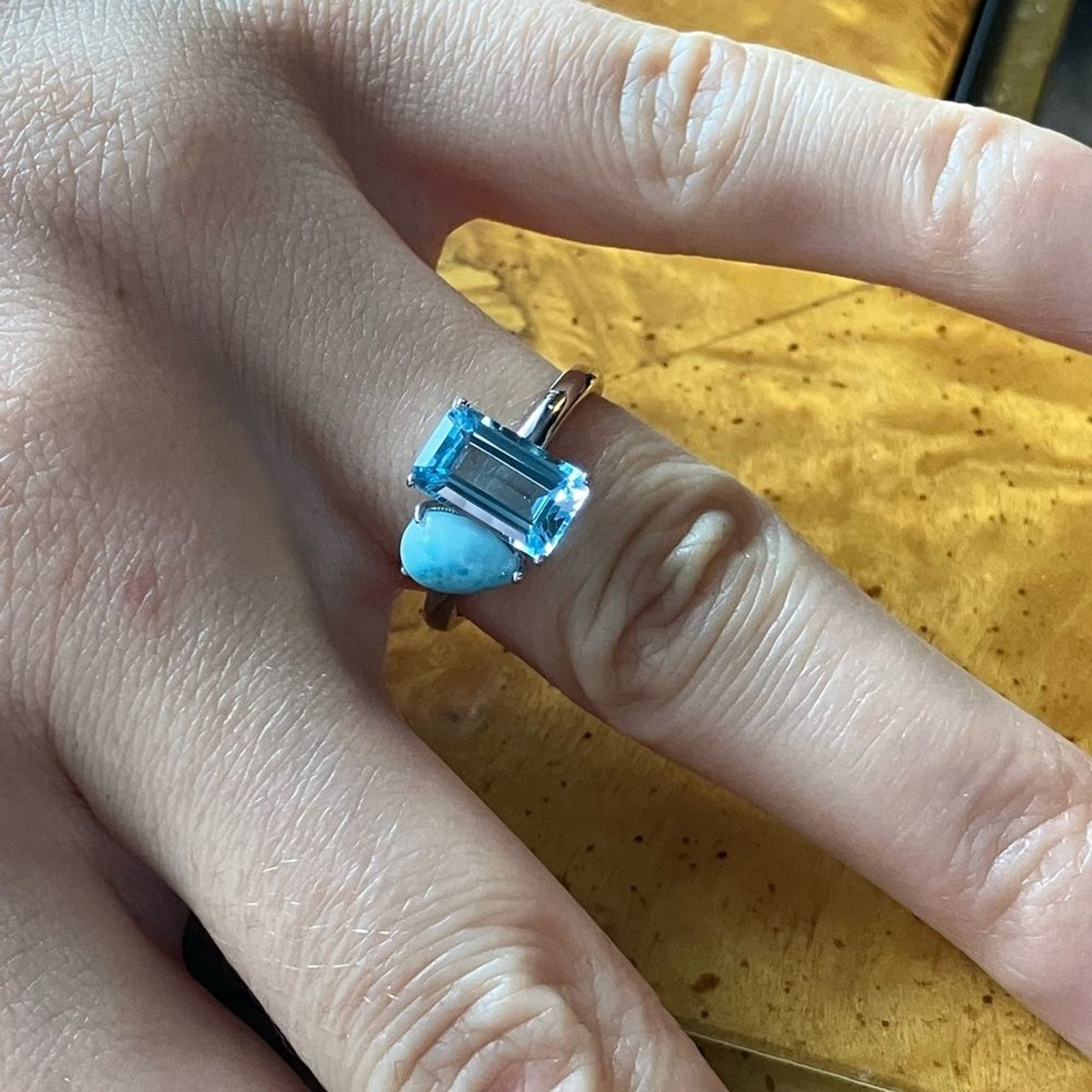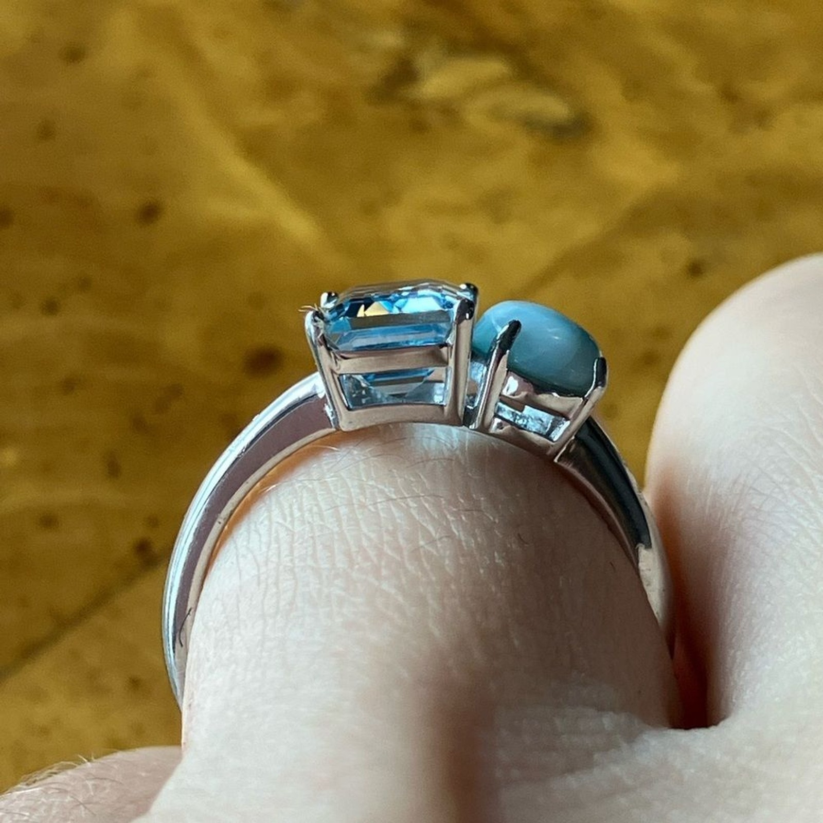 как выглядит Natural Larimar Blue Topaz Sterling Silver Ring Size 7 фото