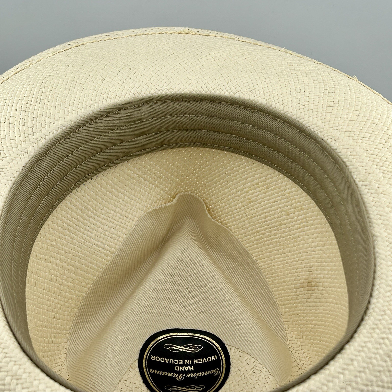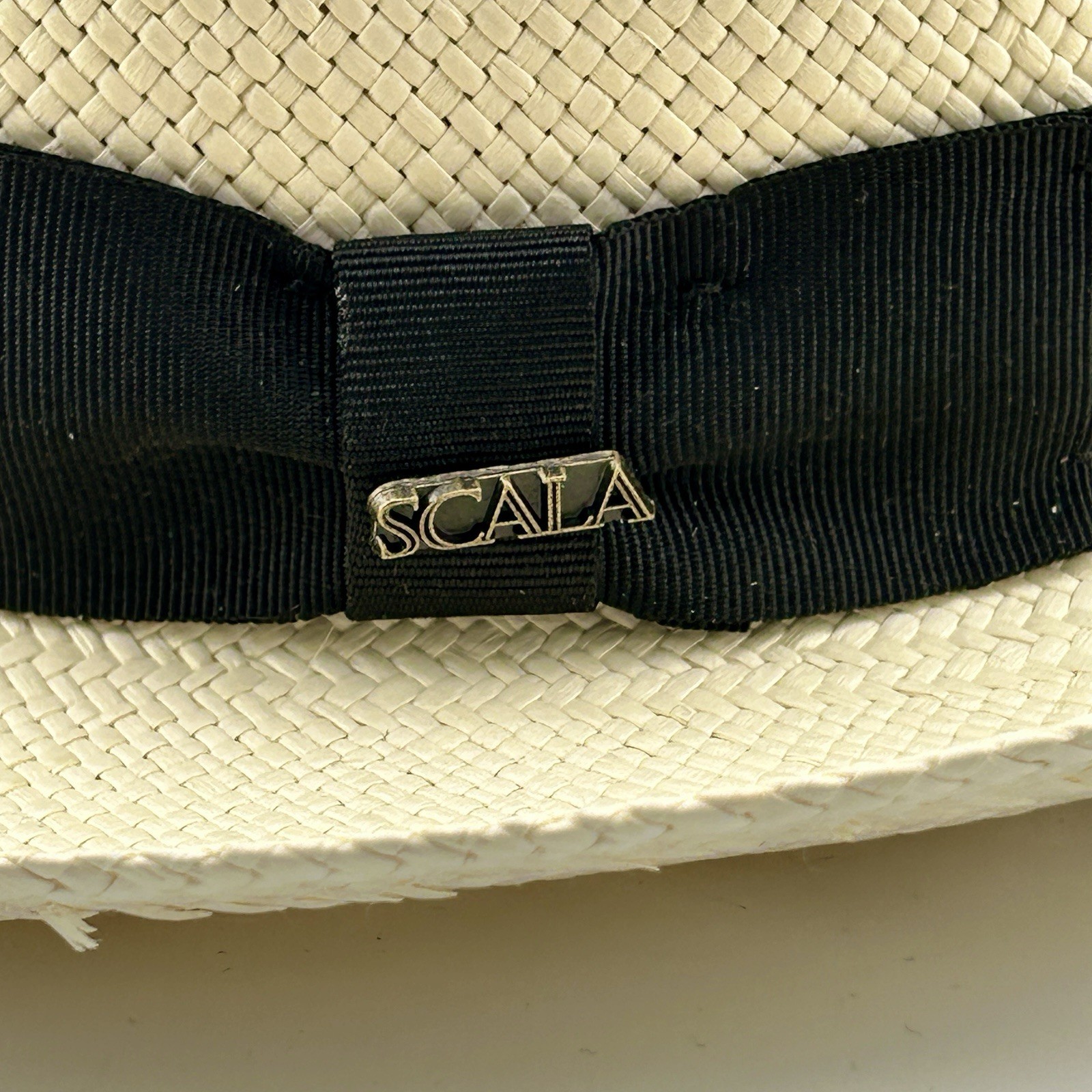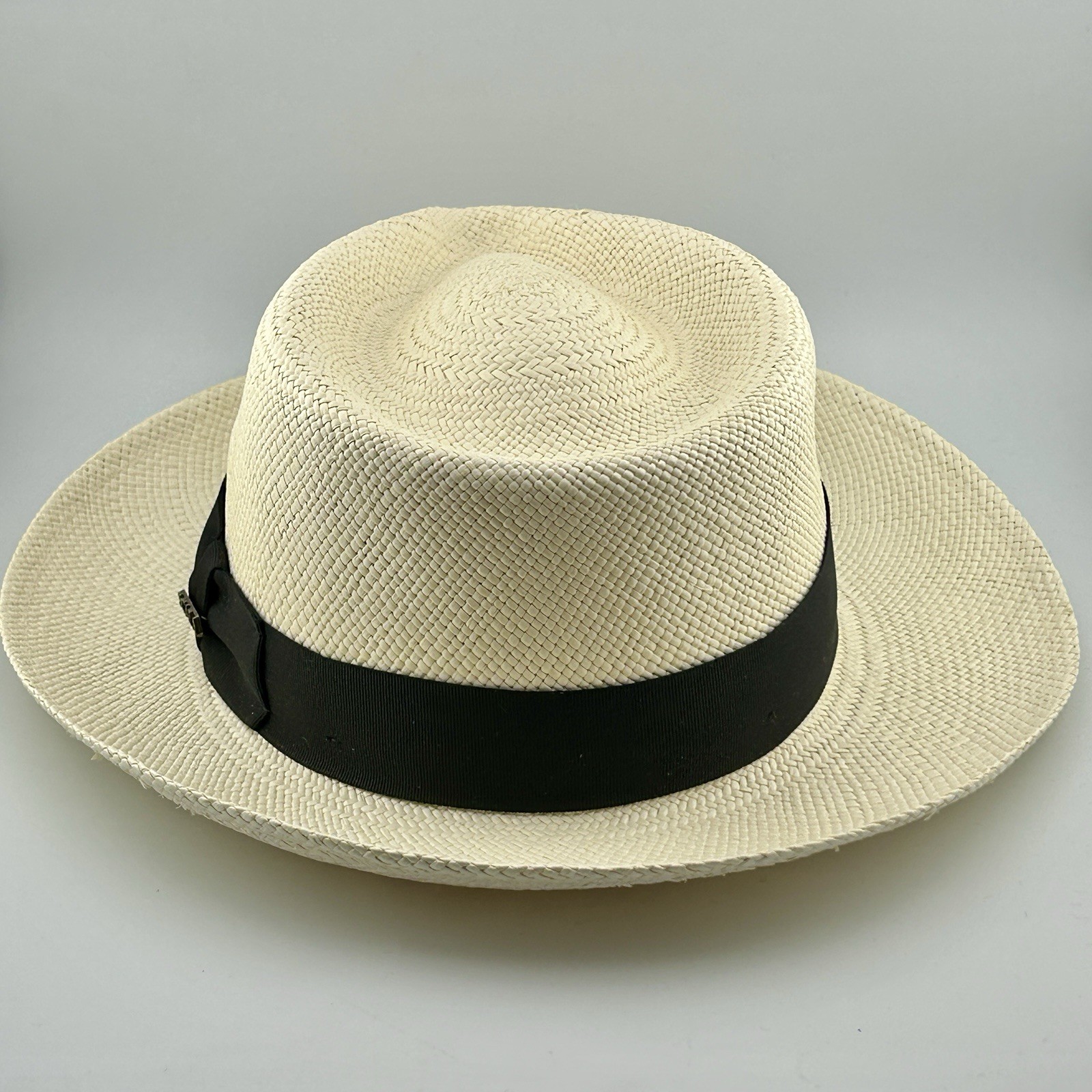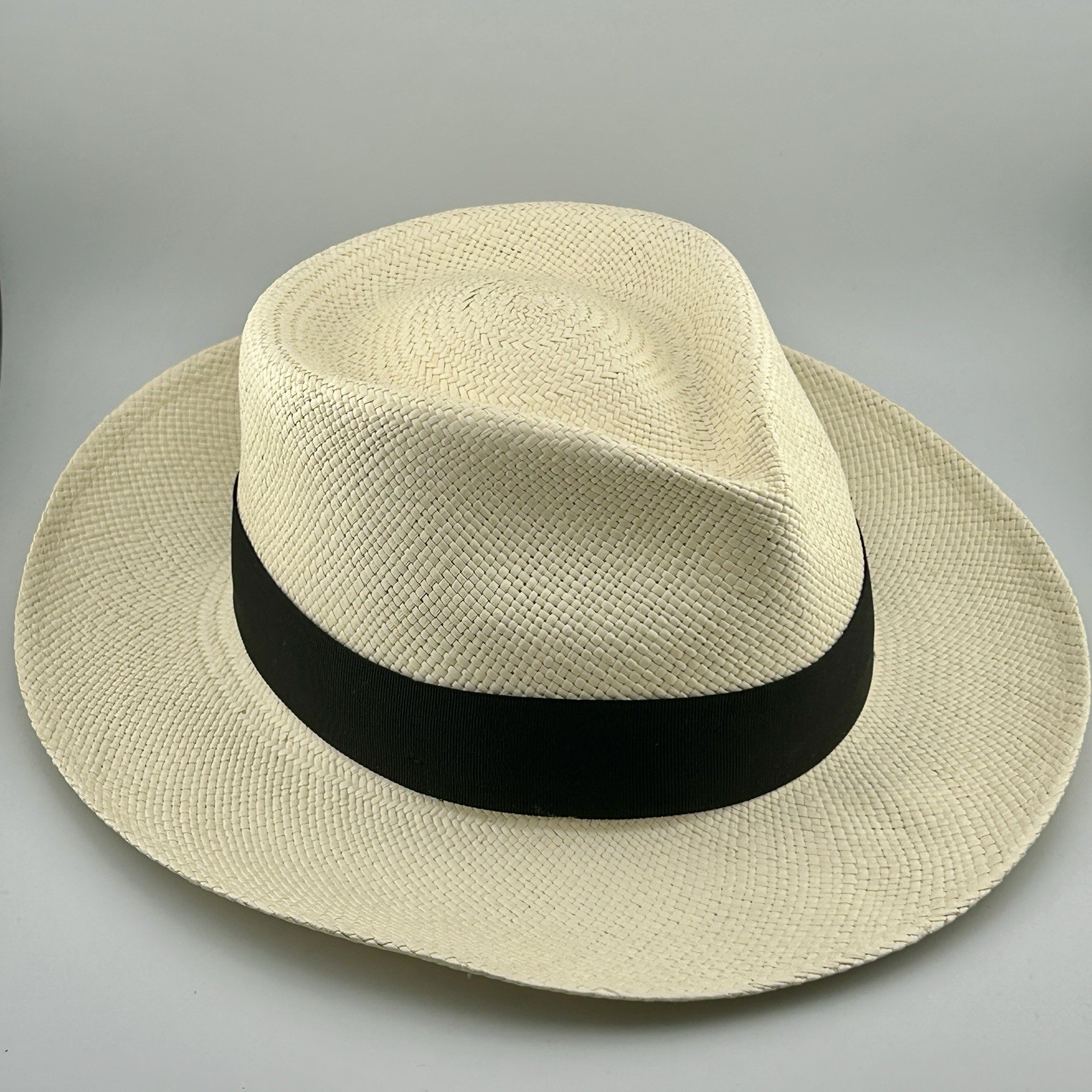 Scala Genuine Panama Fedora Hand Woven Ecuador Black Band 56.5cm Medium