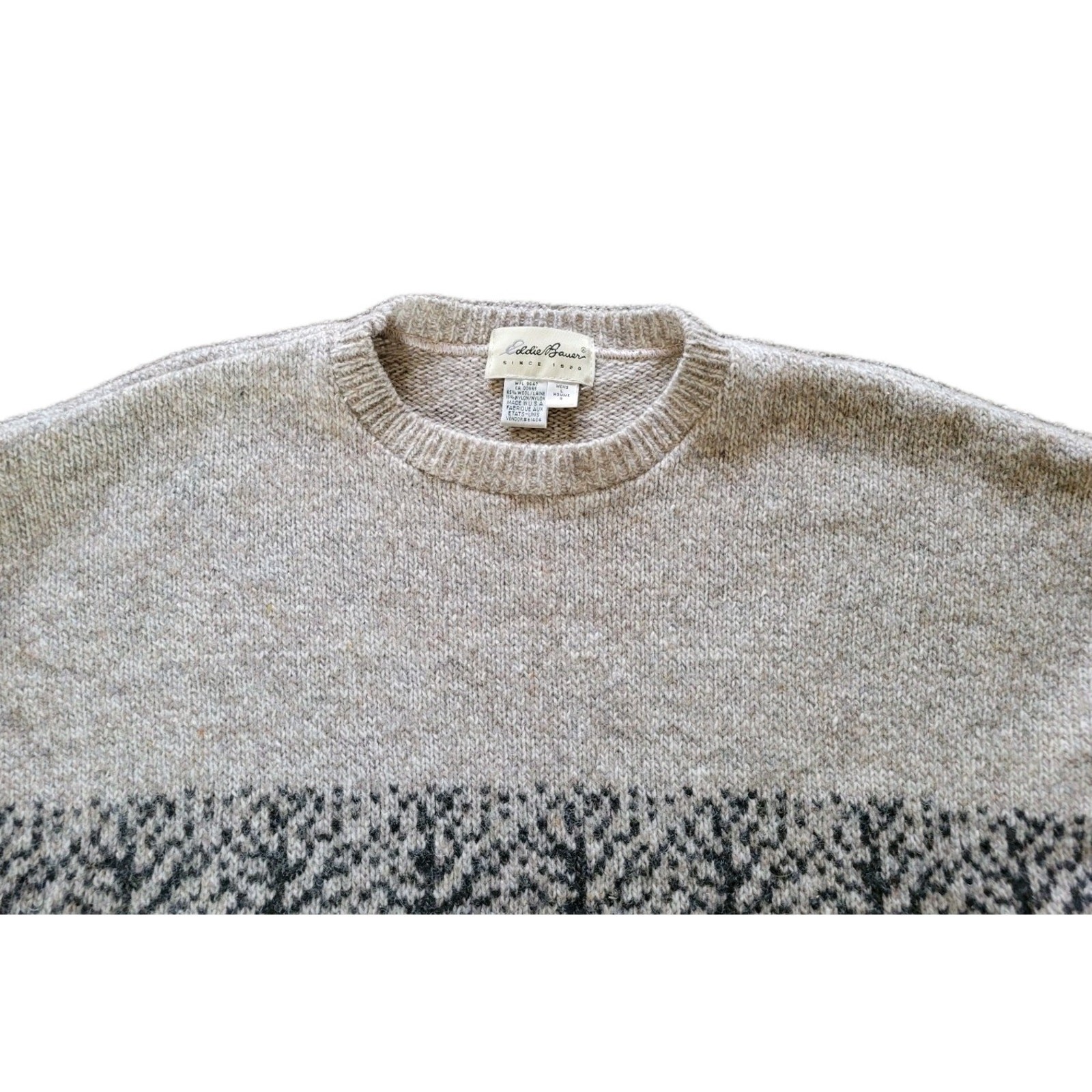 Vintage Eddie Bauer Knit Wool Treeline Print Sweater Size Large Mens Made USA