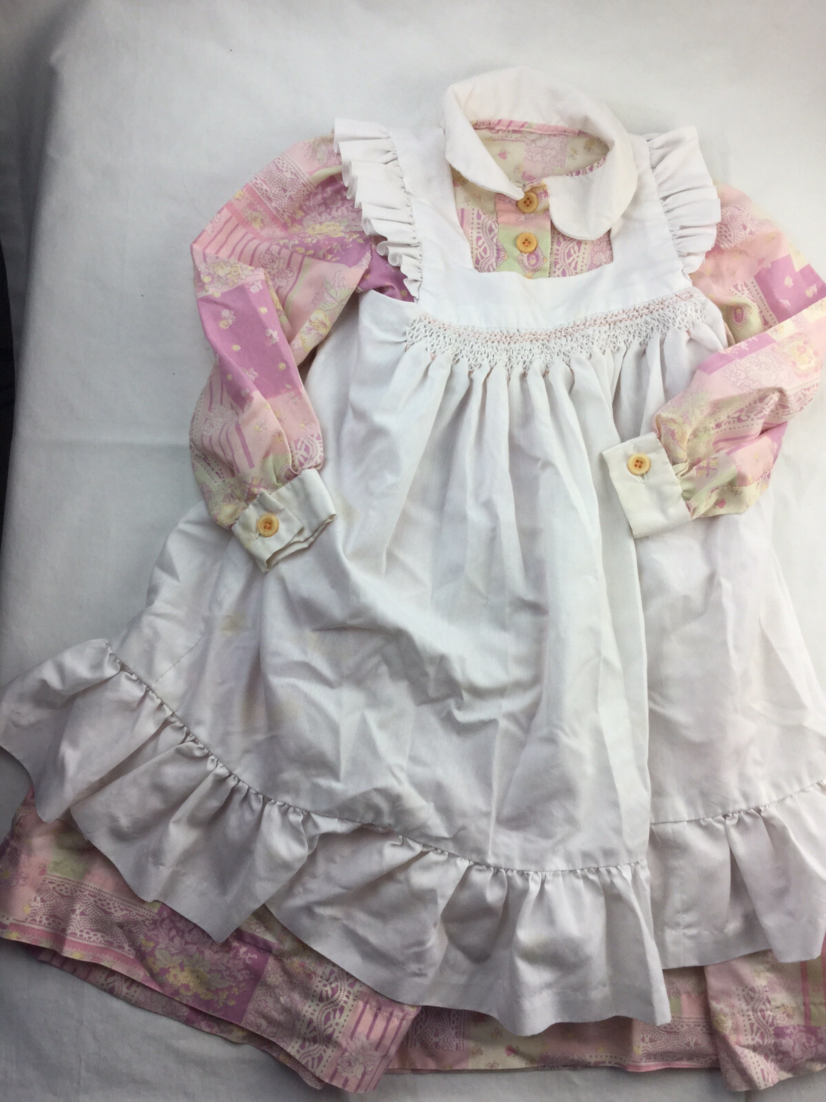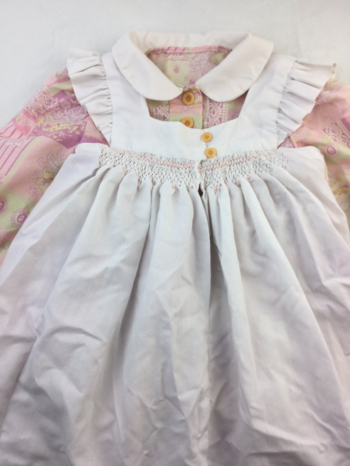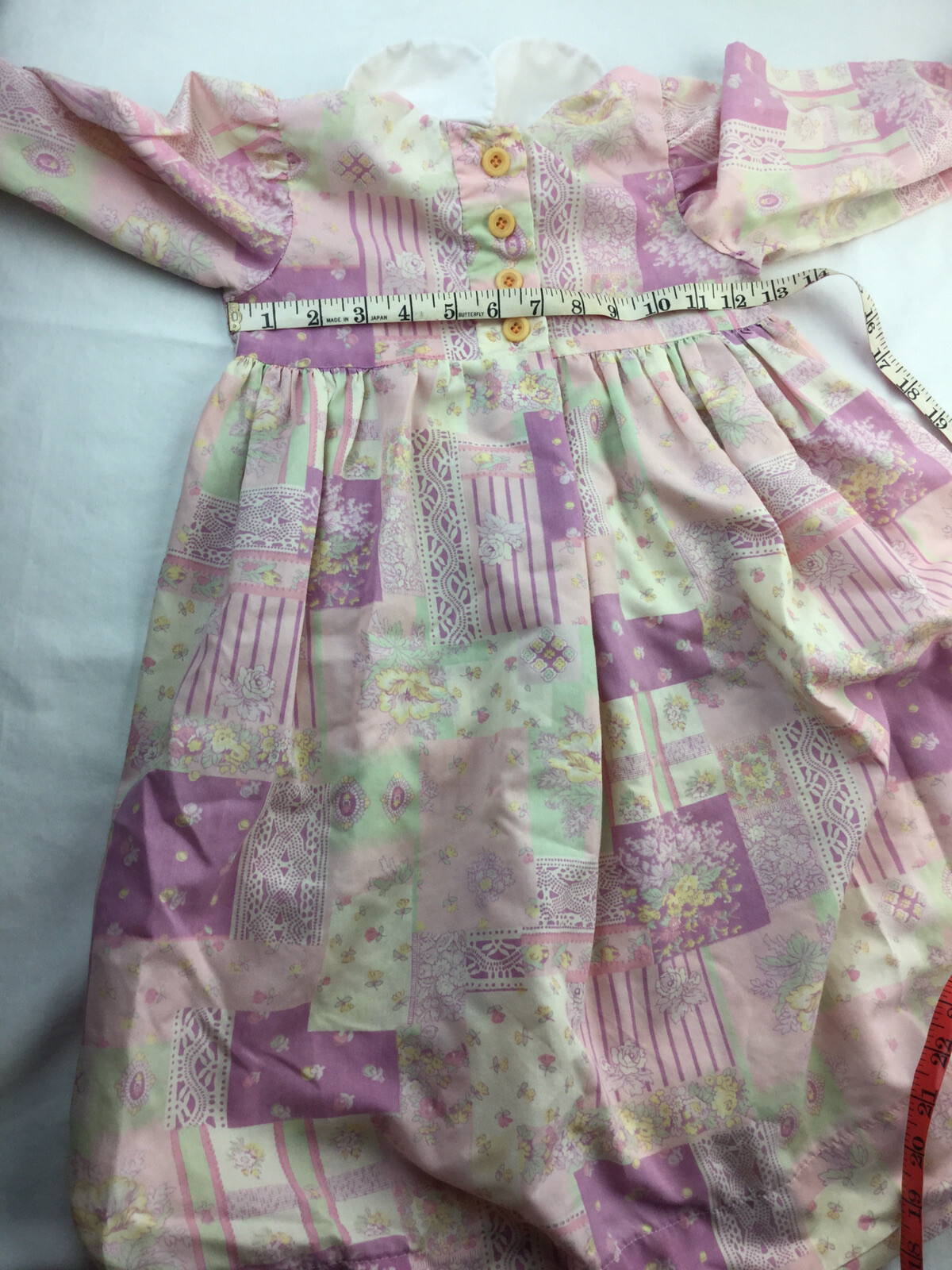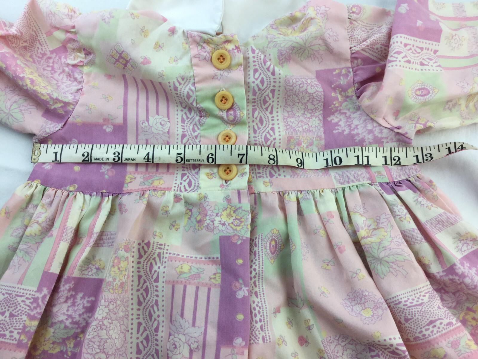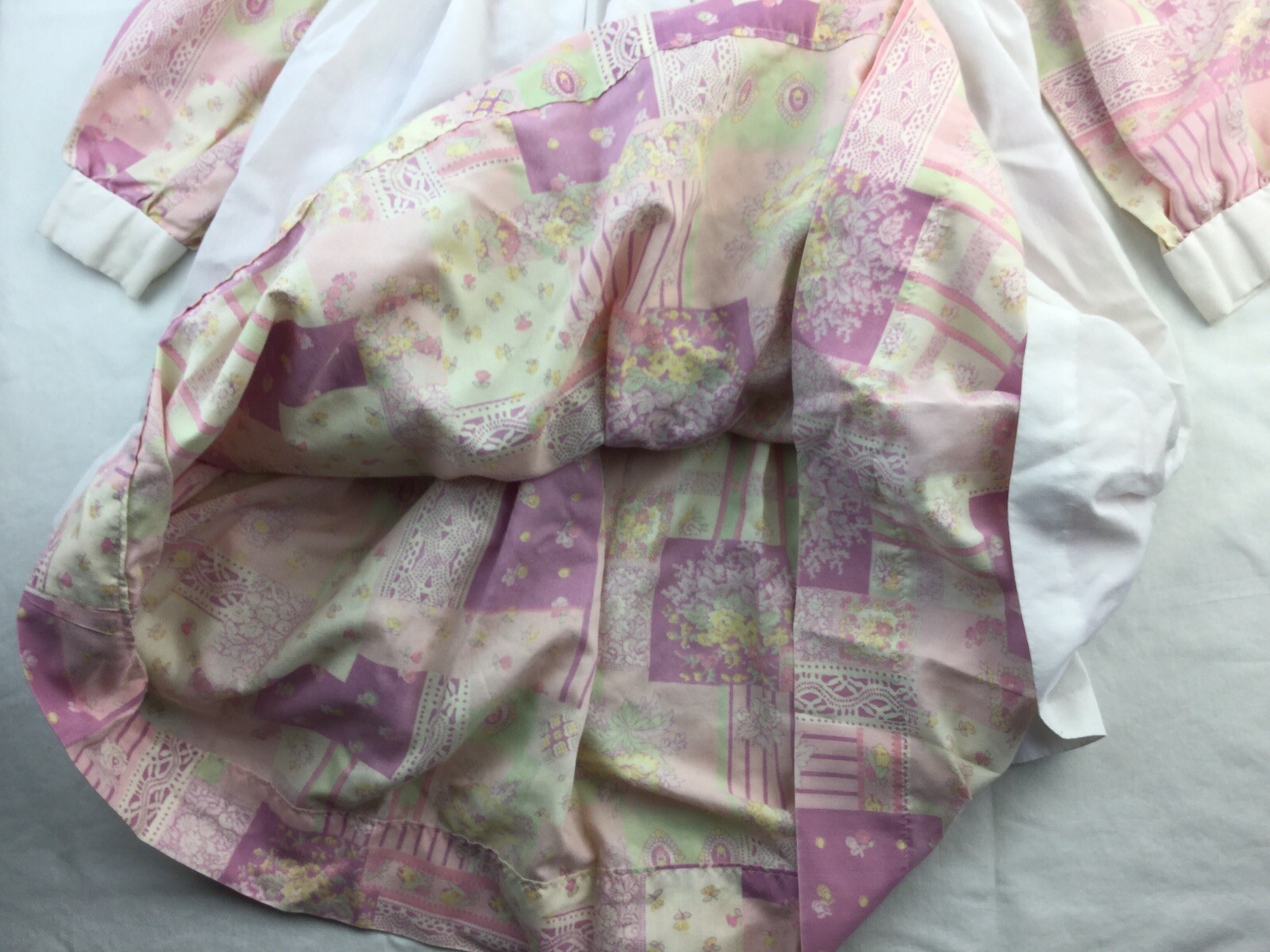 Vintage Patchwork Pink purple White Pinafore Toddler Dress Size 4T Ruffles Flaws