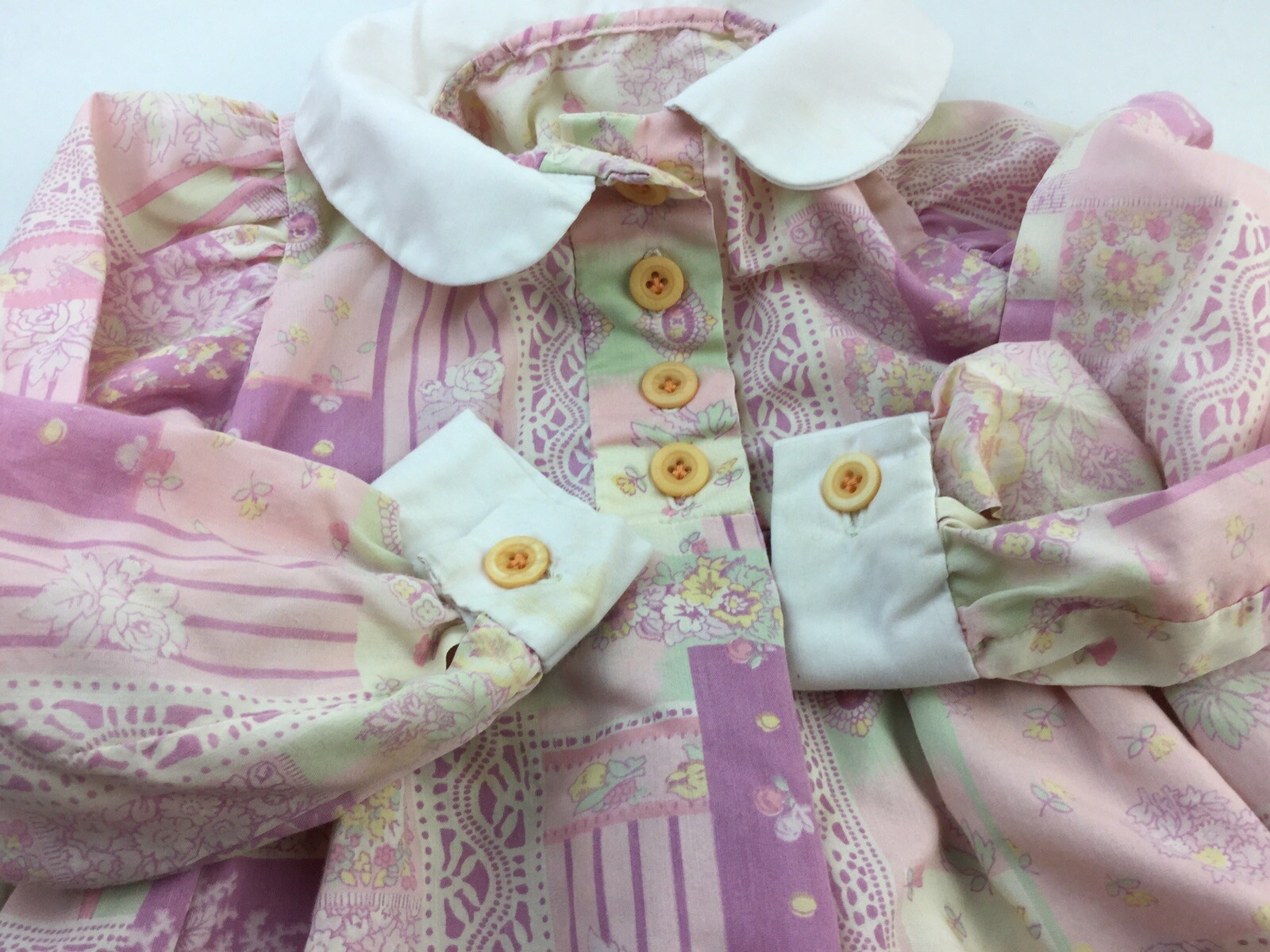 как выглядит Vintage Patchwork Pink purple White Pinafore Toddler Dress Size 4T Ruffles Flaws фото