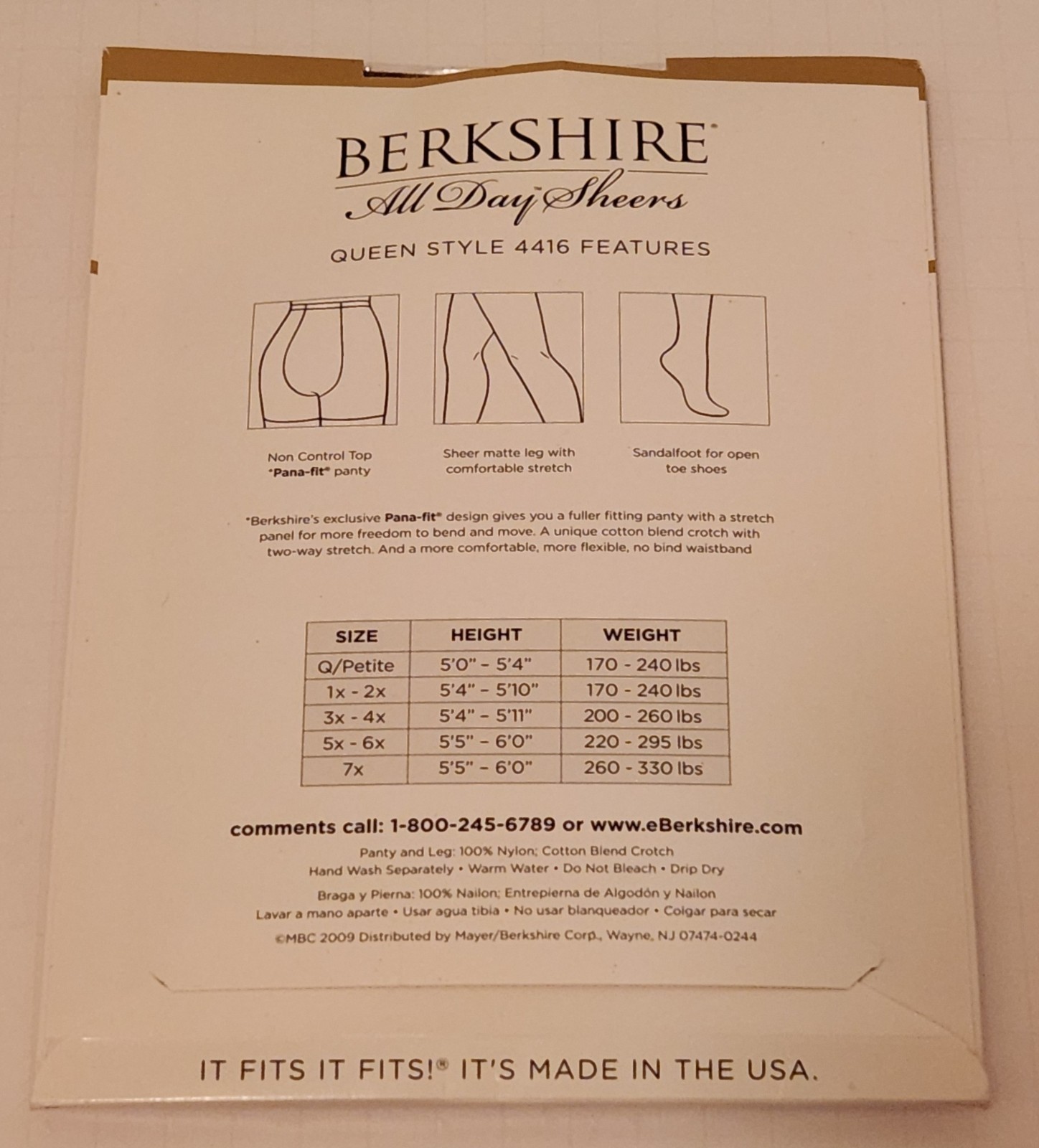 All Day Sheer PantyHose Berkshire Queen 3XL-4XL French Coffee Sandalfoot D-48 2