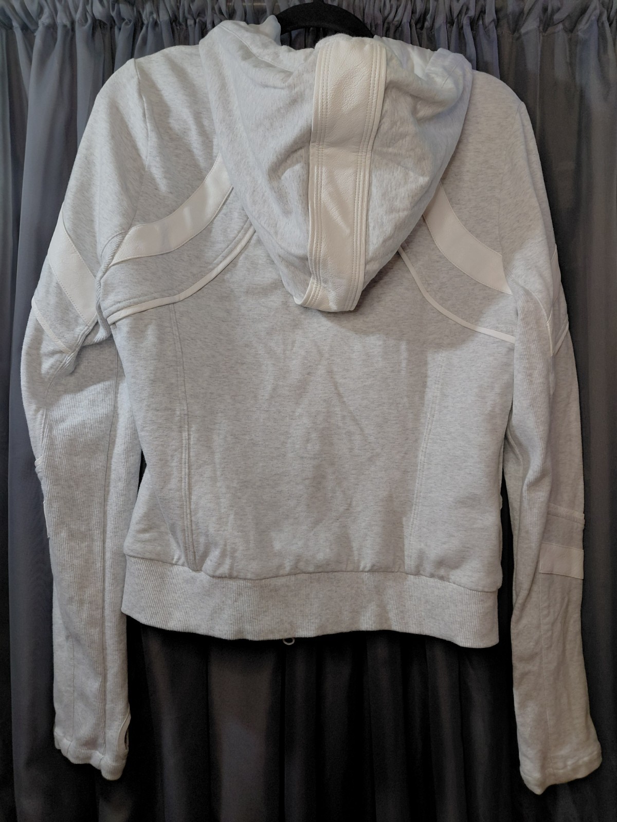 White Blanc Noir Hoodie With Faux Leather Silk Lined Hood. Size Large