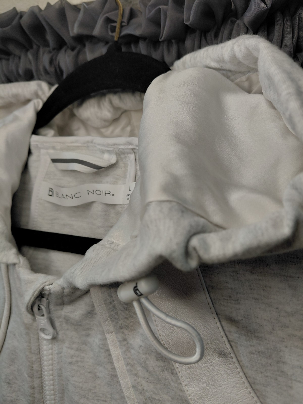 как выглядит White Blanc Noir Hoodie With Faux Leather Silk Lined Hood. Size Large фото