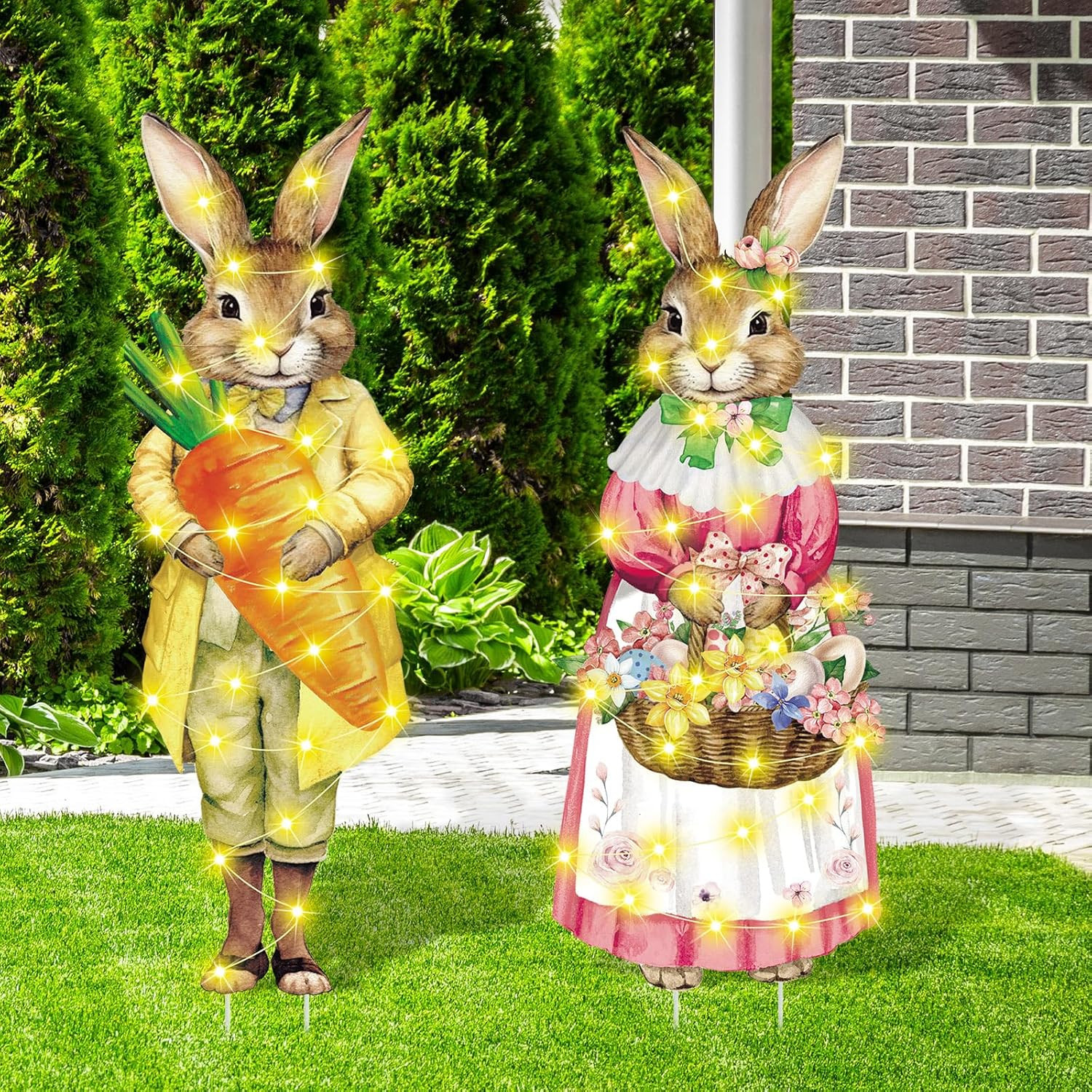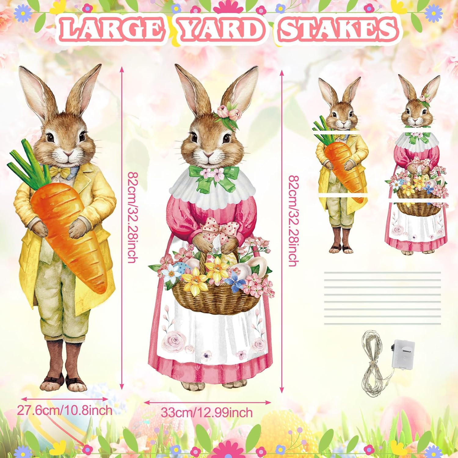 2 Pcs Easter Yard Signs Bunny Egg Outdoor Decorations with Stakes Easter Yard De