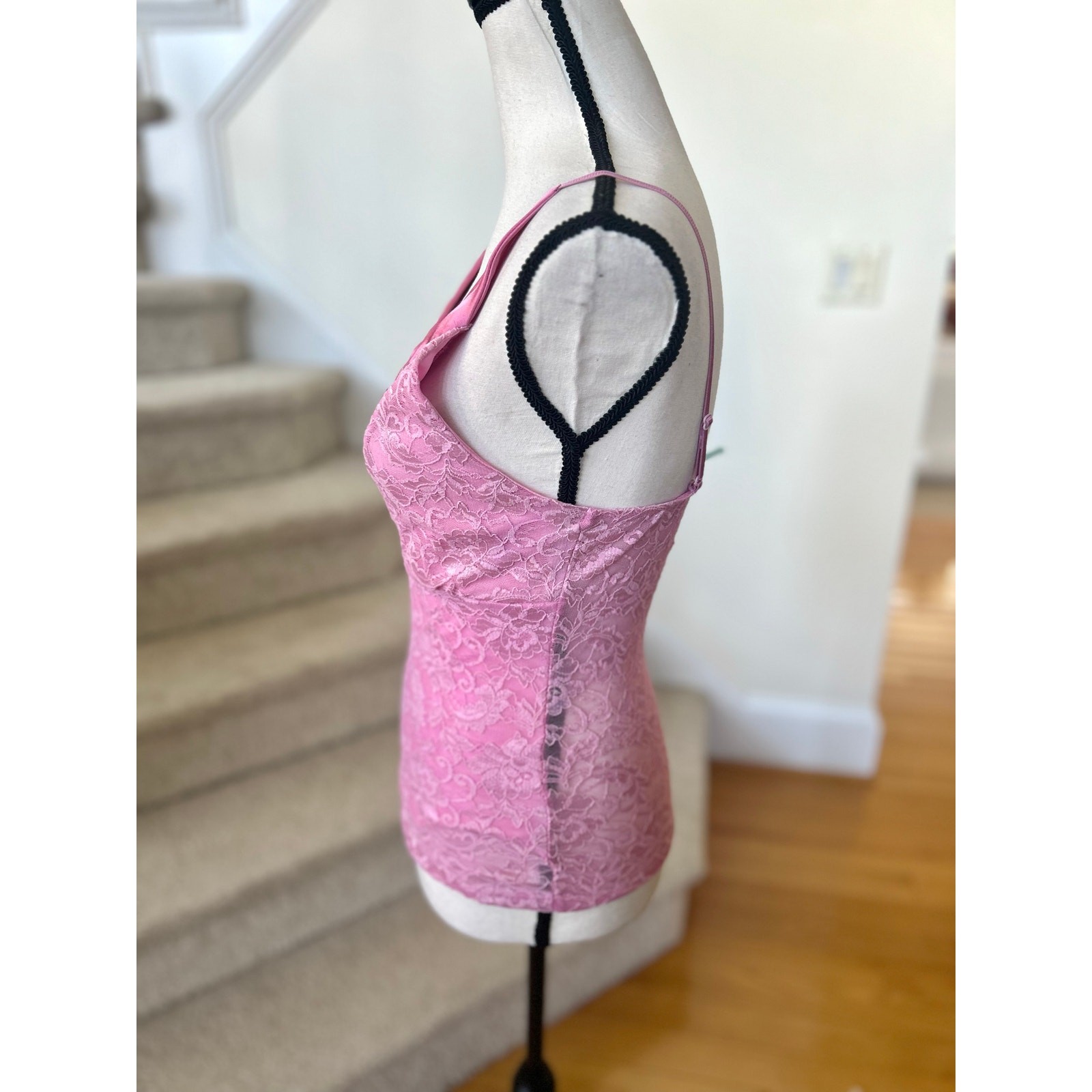 как выглядит Vintage Y2K Pink Satin Lace Plunge V-Neck Cami Tank Top Whimsygoth Coquette фото