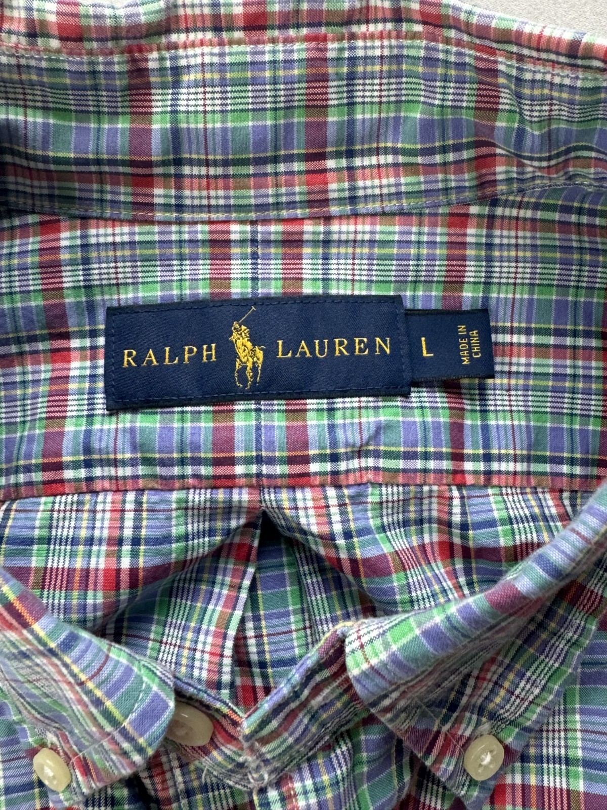 как выглядит RALPH LAUREN Casual Button Down Blue/Green/Red Plaid Mens L Classic Fit фото