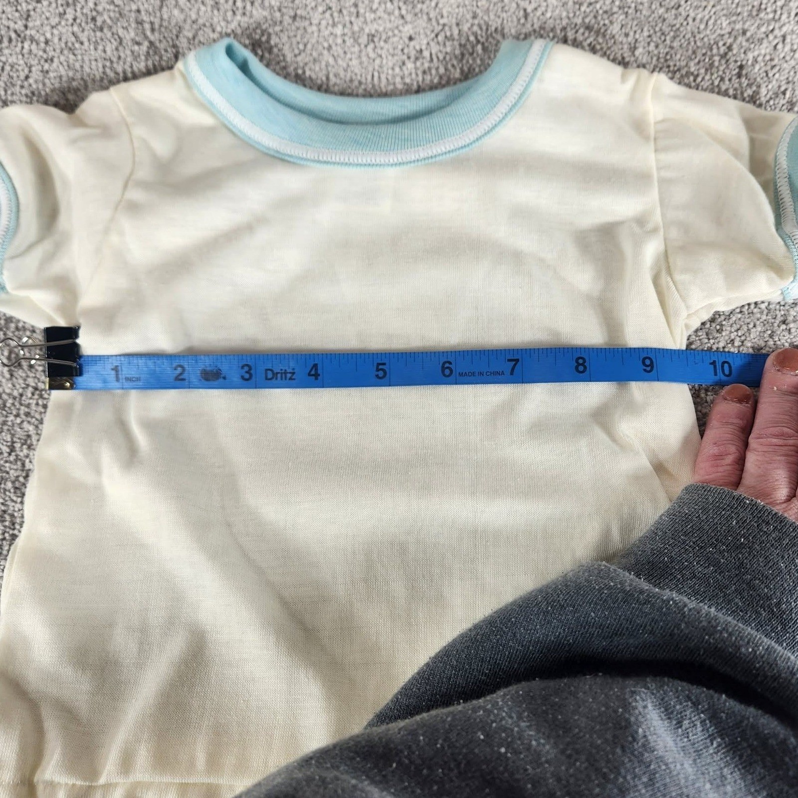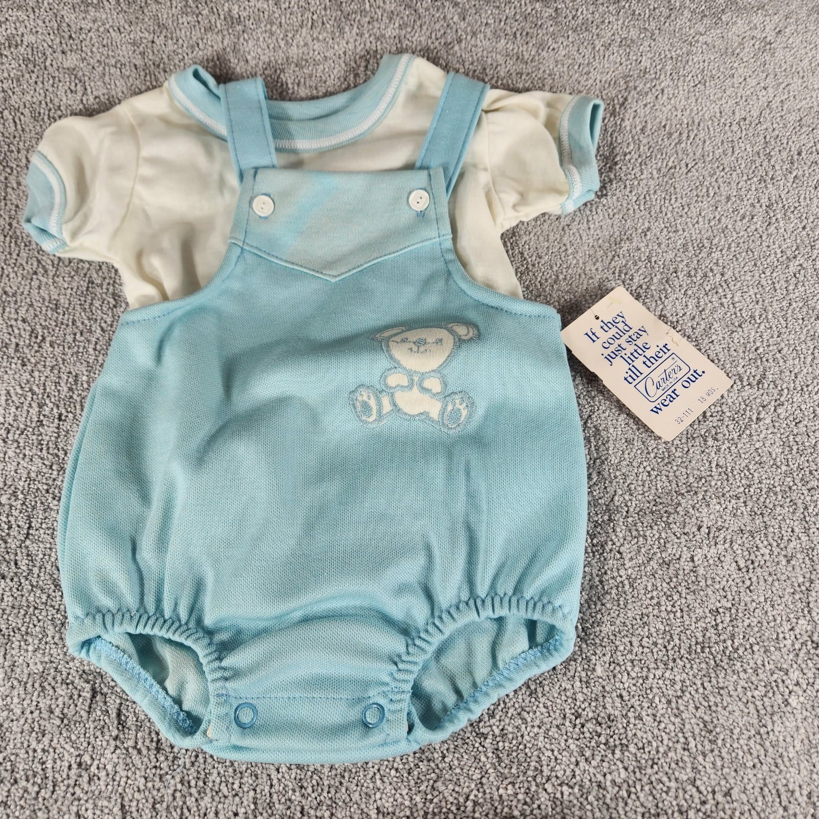 Carter's Romper Set Blue Teddy Bear Vintage 2pc Outfit with Rattle Baby 18 Mos