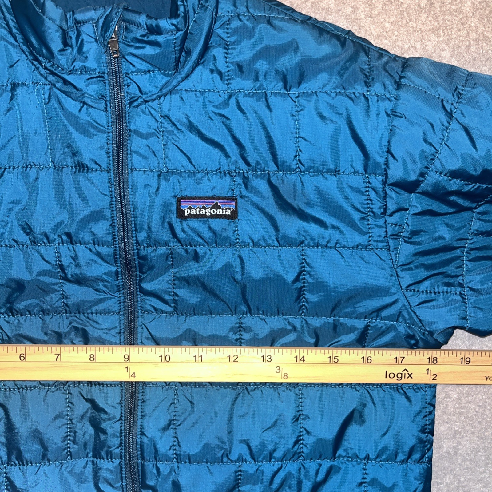 как выглядит Patagonia Nano Puff Brick Quilt Jacket Teal Blue Green Kids XL 14 Full Zip Pocke фото
