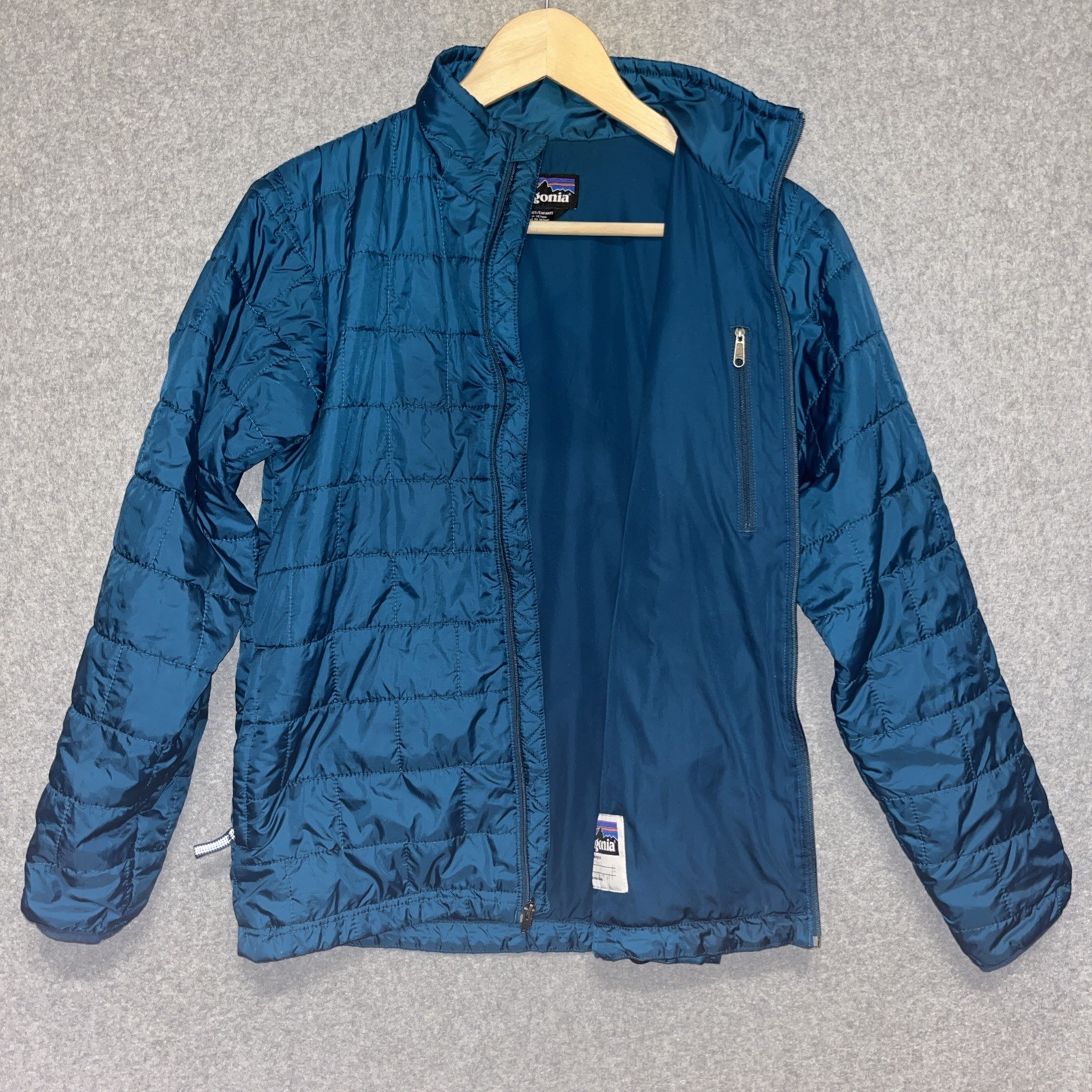 Patagonia Nano Puff Brick Quilt Jacket Teal Blue Green Kids XL 14 Full Zip Pocke