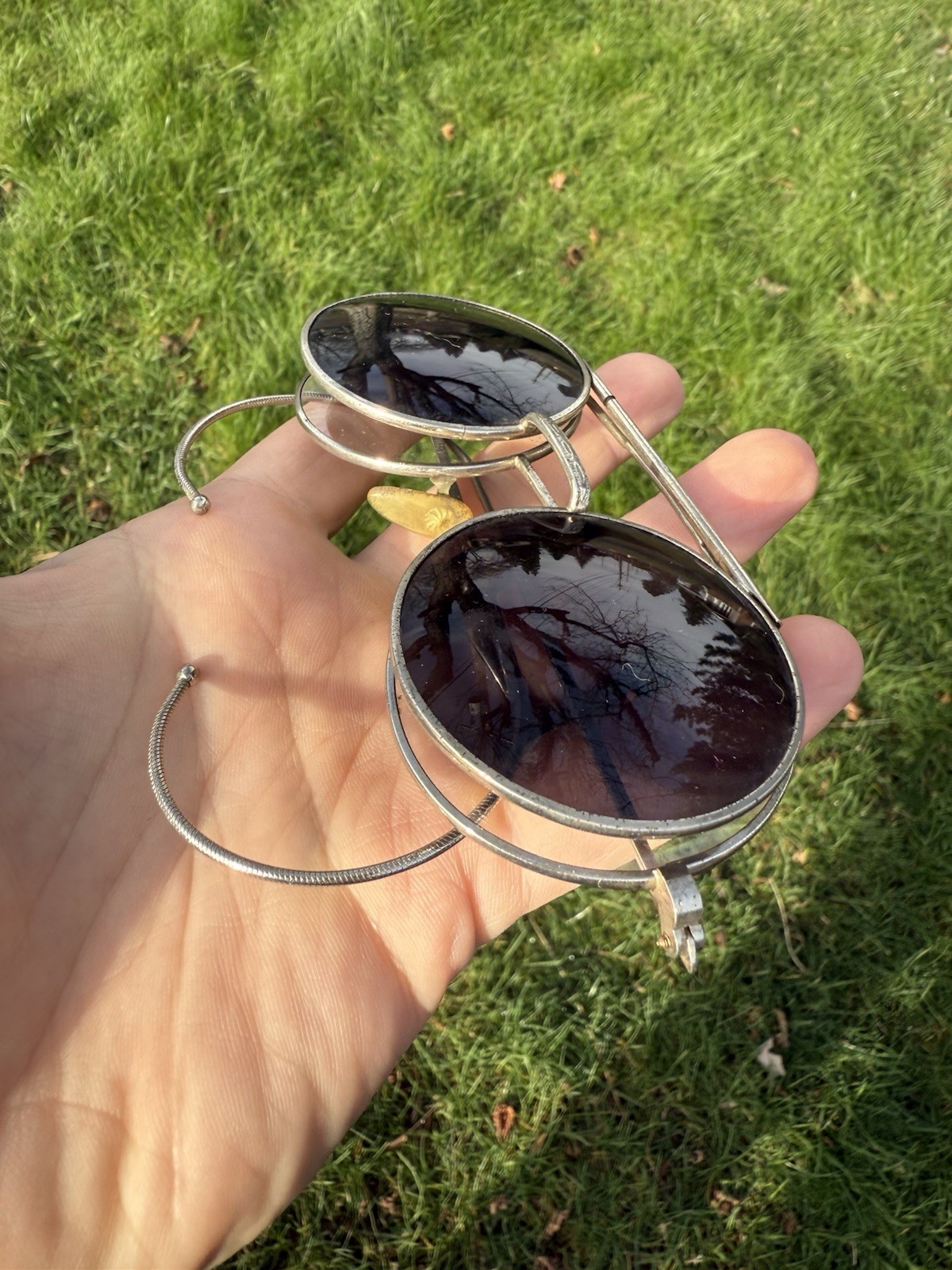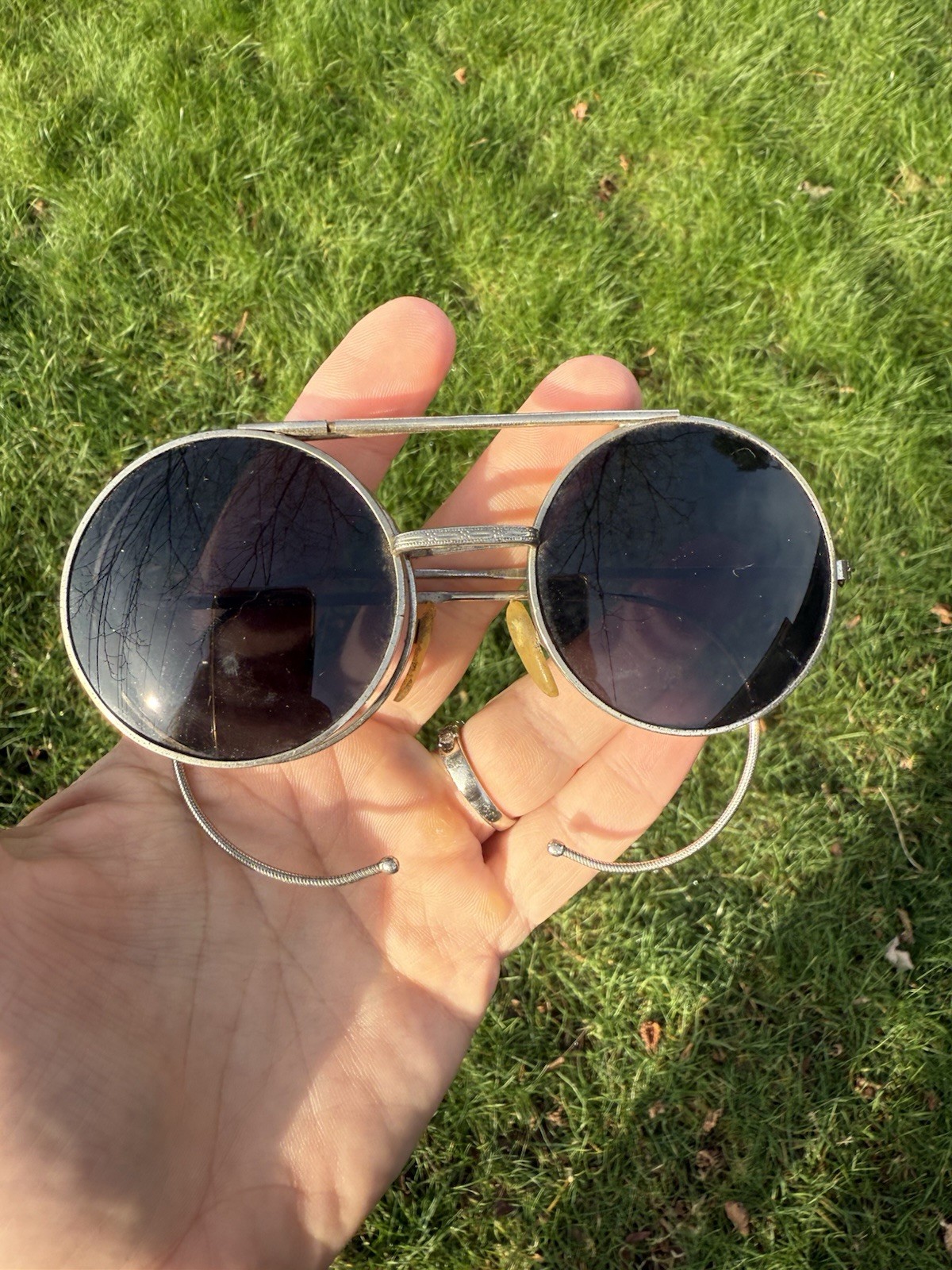 как выглядит Steampunk Vintage Retro Round Circle Flip Up Sunglasses Cable Temples Silver фото