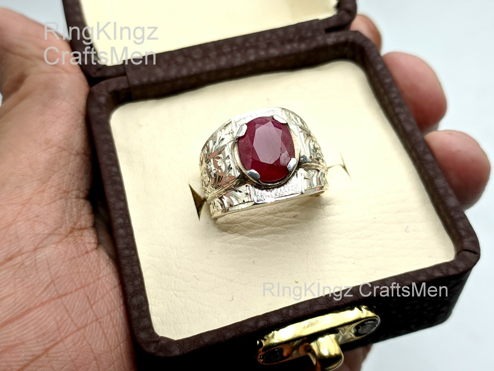 Natural Ruby Stone 925 Sterling Silver AAA Mens Ring Size 9 Handmade Ring Size 9