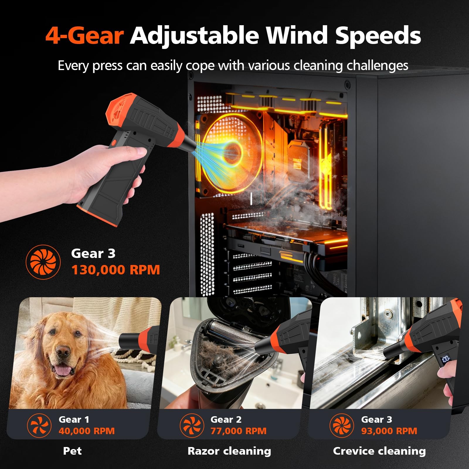Electric Compressed Air Duster, 110000RPM Cordless Portable Air Blower Mini P...