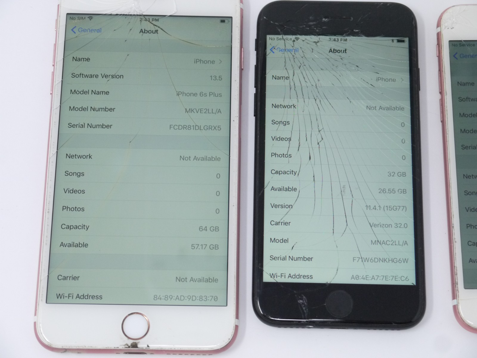 Lot of 4 Working Cracked Apple iPhone 7 / 6s Plus / 6s 16GB-128GB Smartphones
