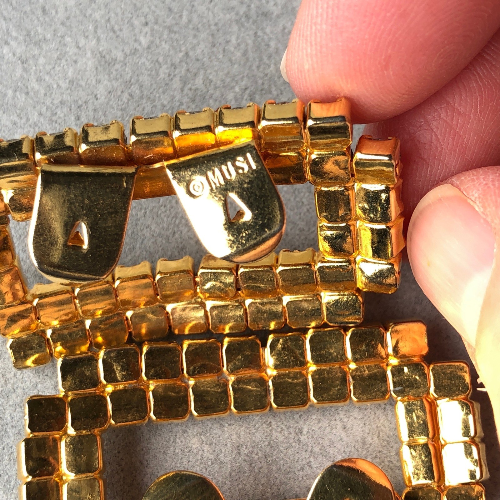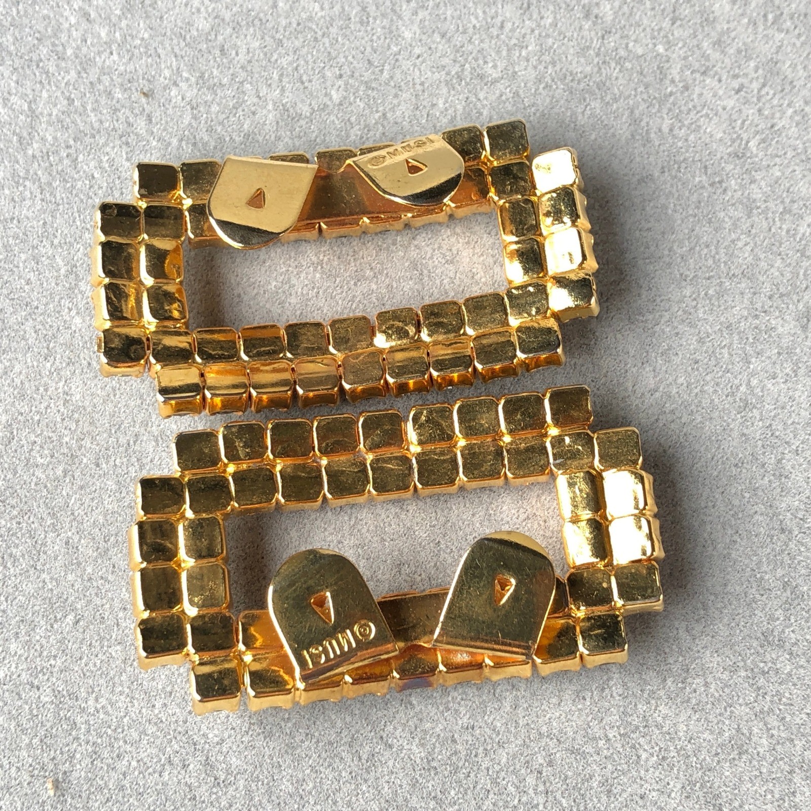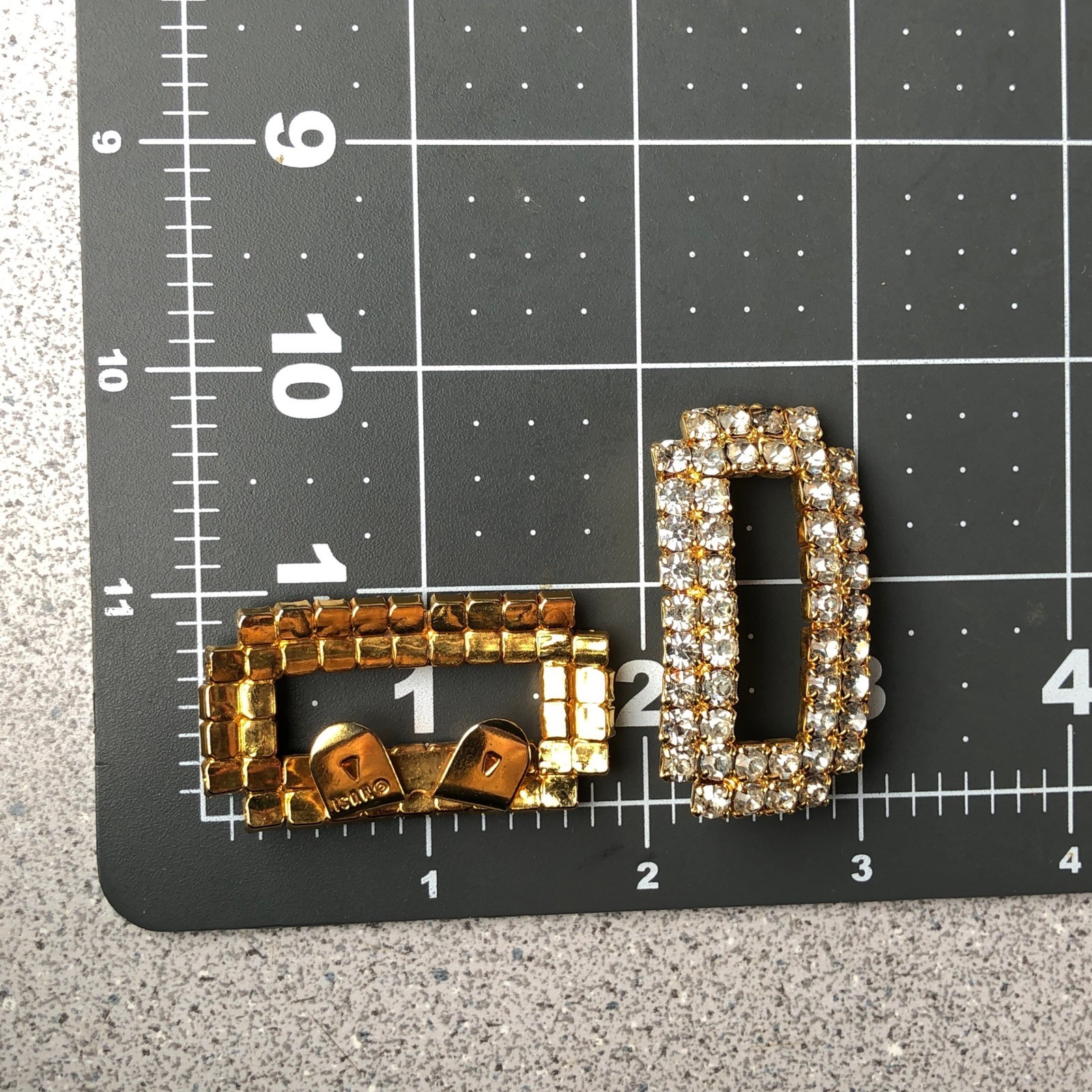 Vintage MUSI Shoe Clips Gold Tone Rhinestone Rectangular Art Deco Style