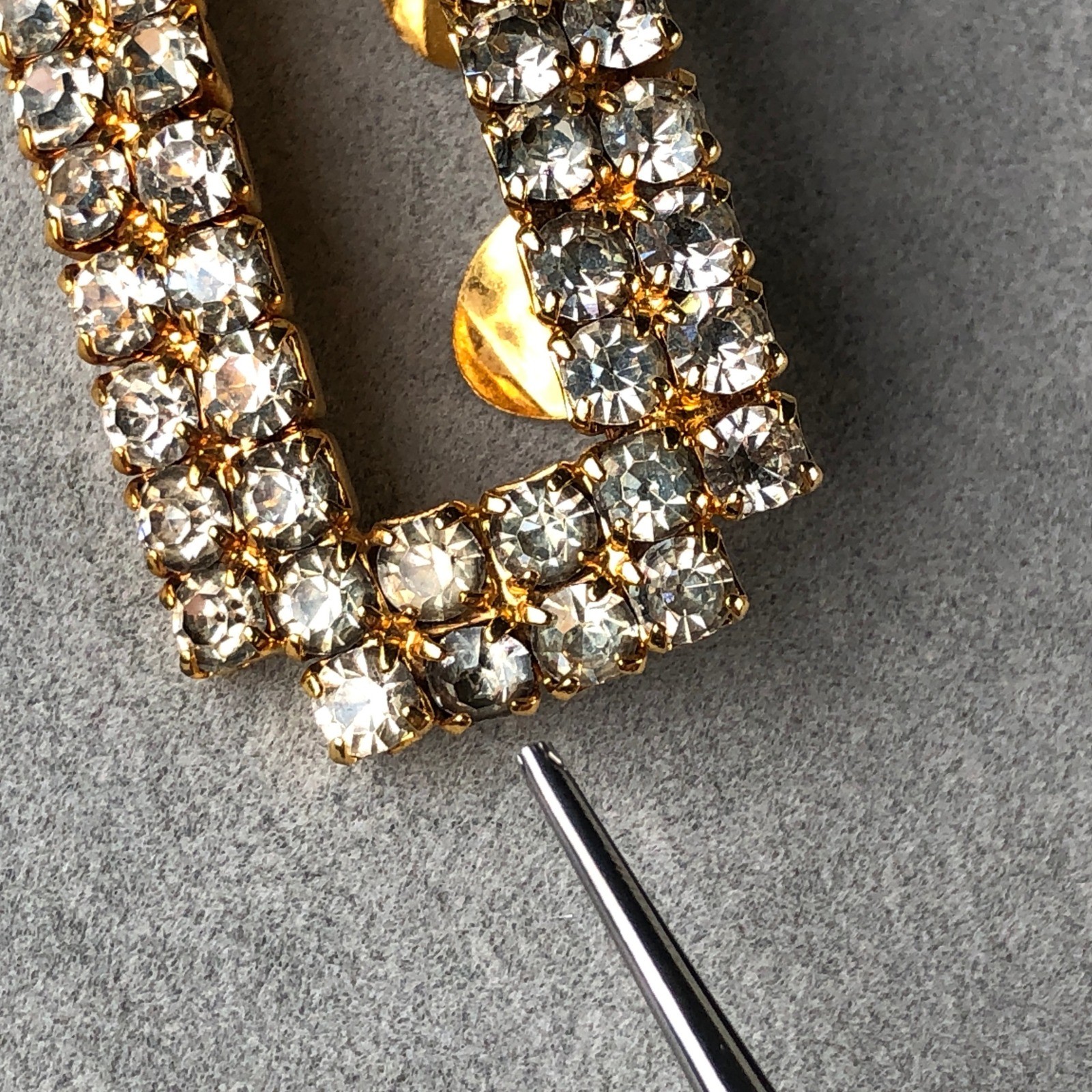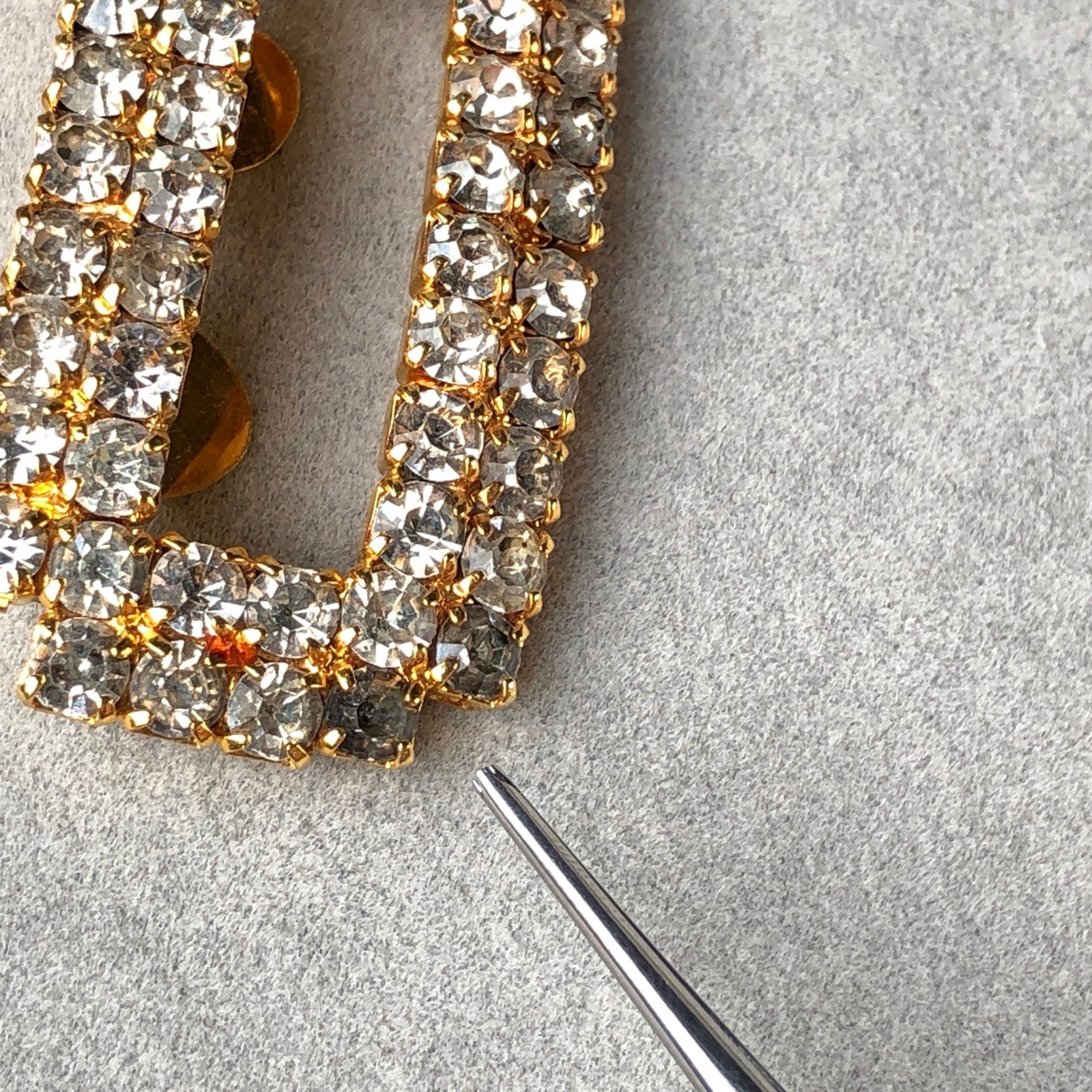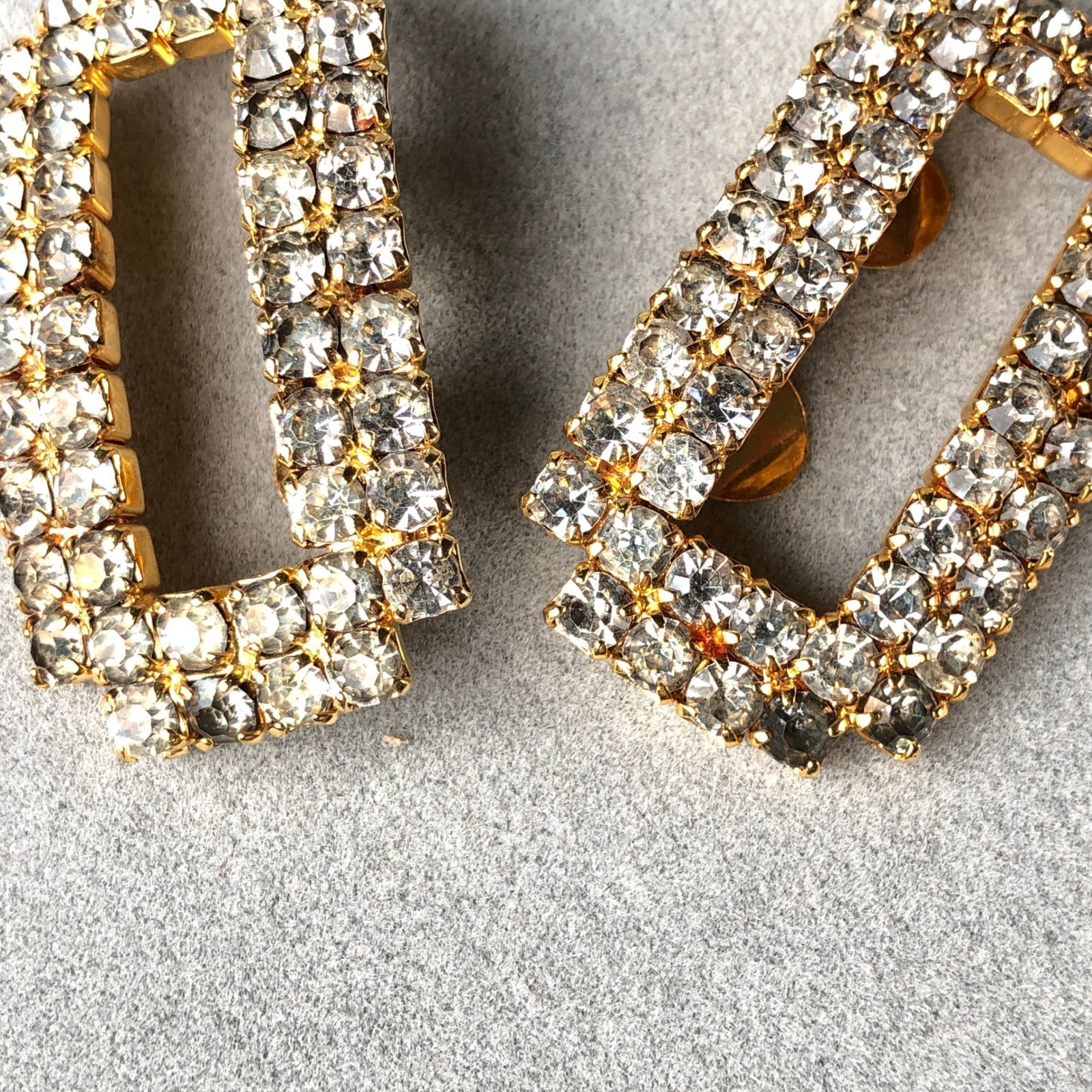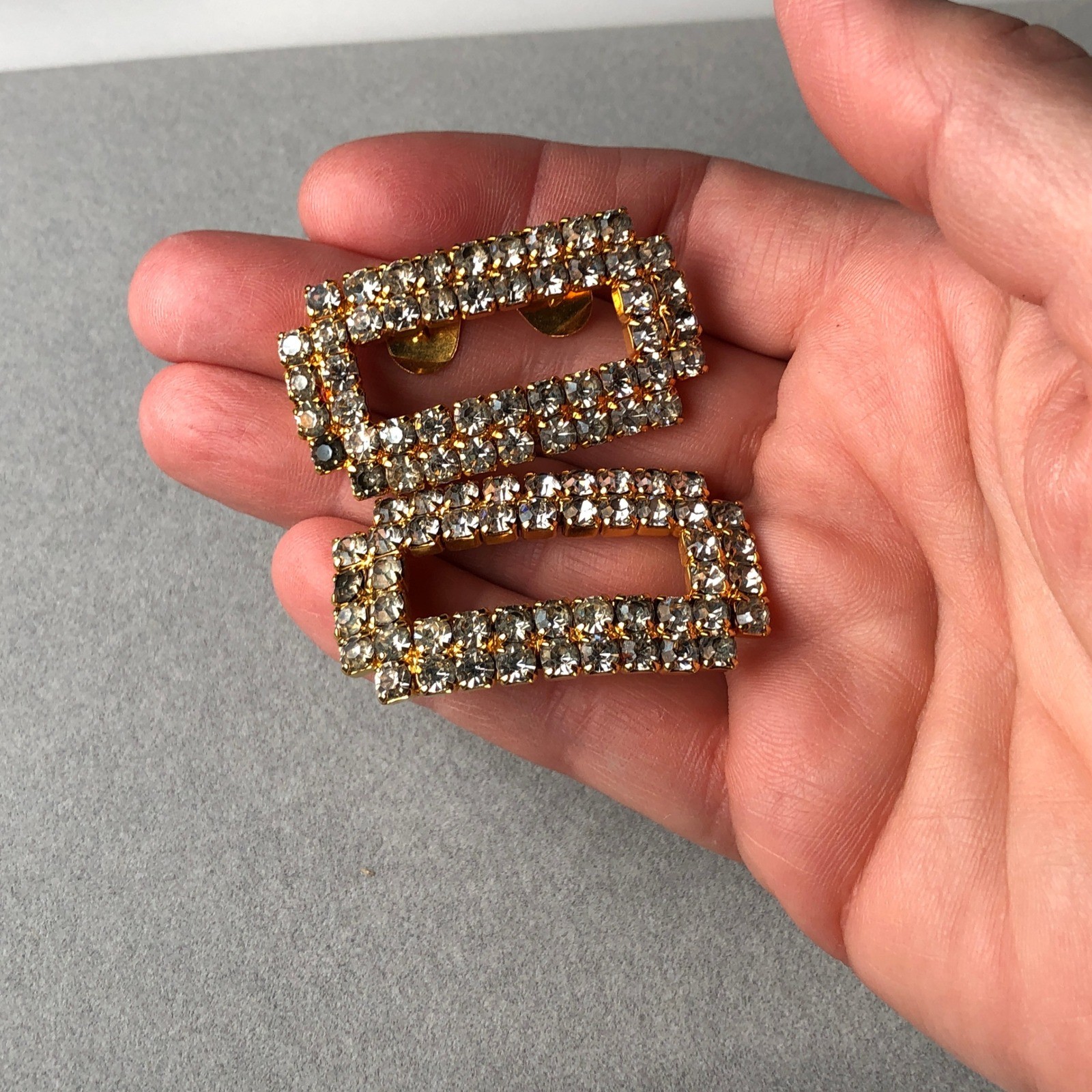 как выглядит Vintage MUSI Shoe Clips Gold Tone Rhinestone Rectangular Art Deco Style фото