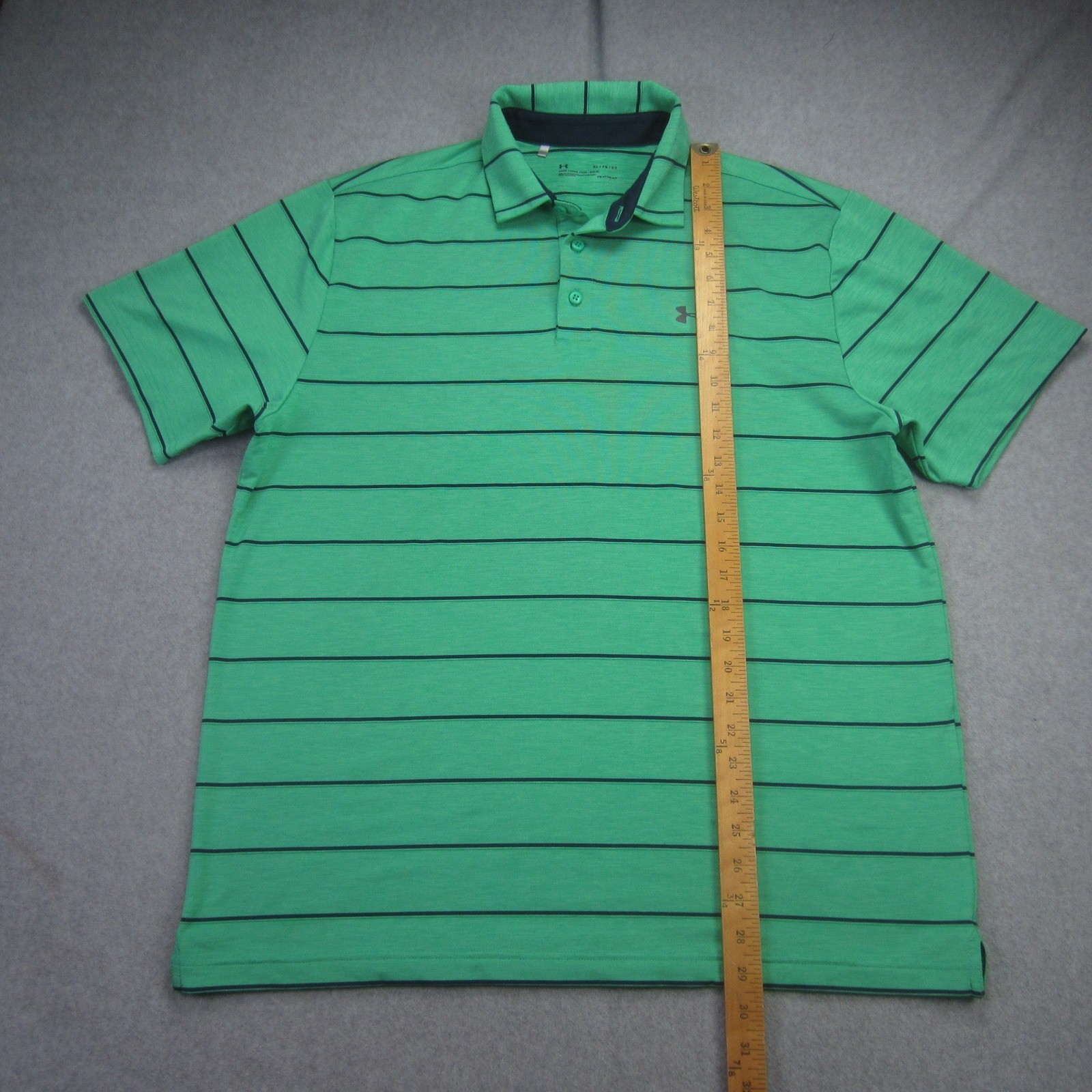 как выглядит Under Armour Polo Shirt Mens XL Green Striped Heat Gear Short Sleeve Golf фото