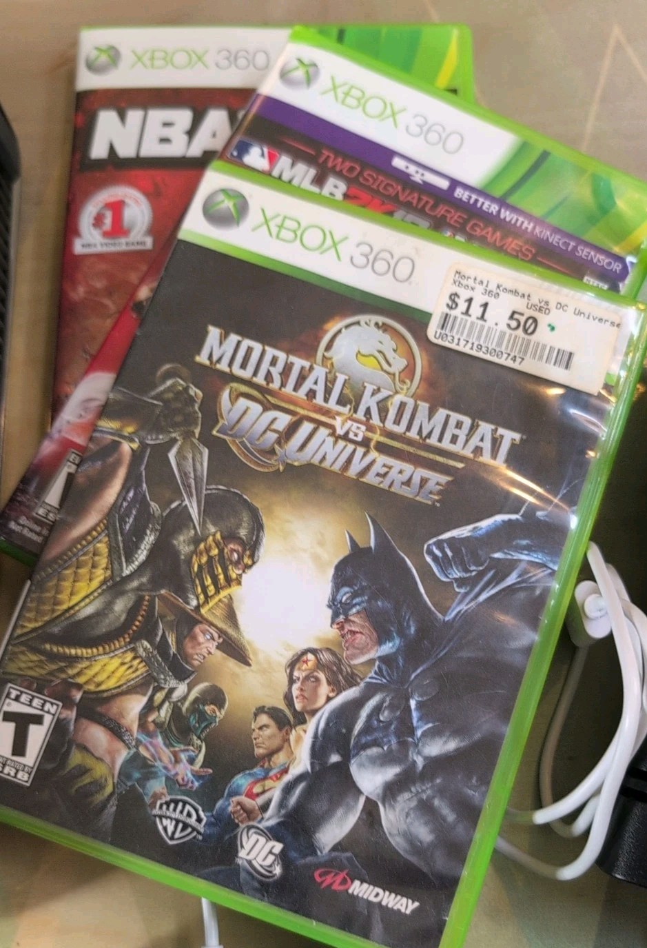 Microsoft Xbox 360 Slim 250GB Black Console 8 Games 2 Controllers Cables Tested