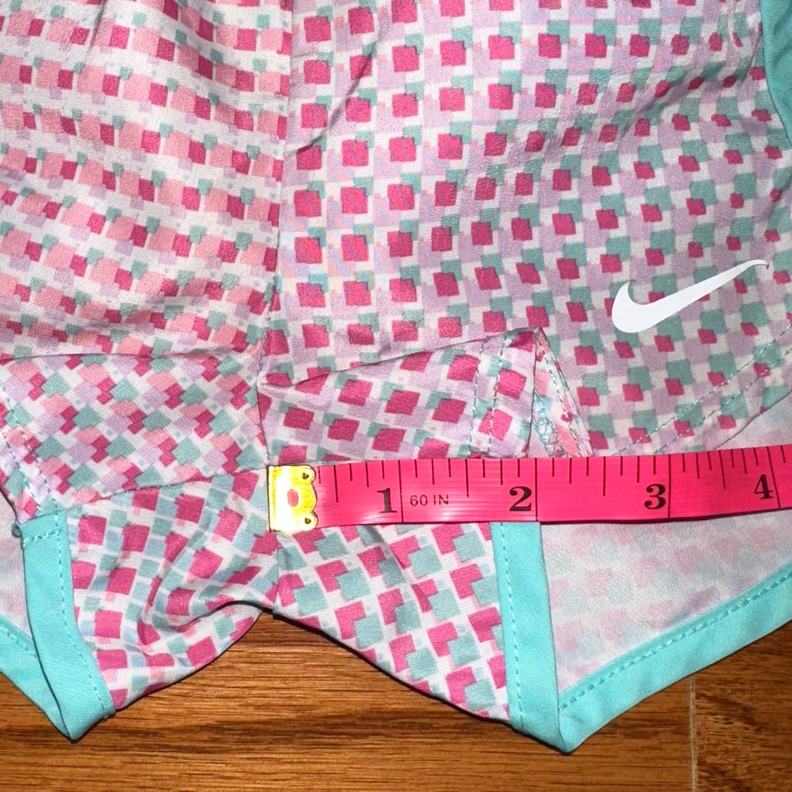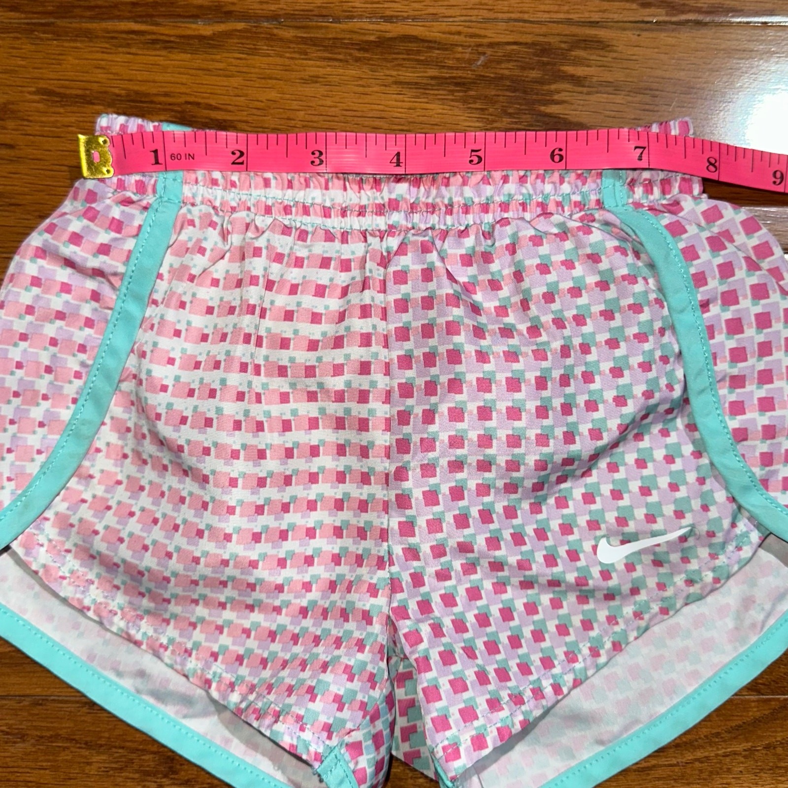 как выглядит Nike Toddler Girl Pink Blue Pattern Dri-Fit Athletic Shorts Size 2T фото